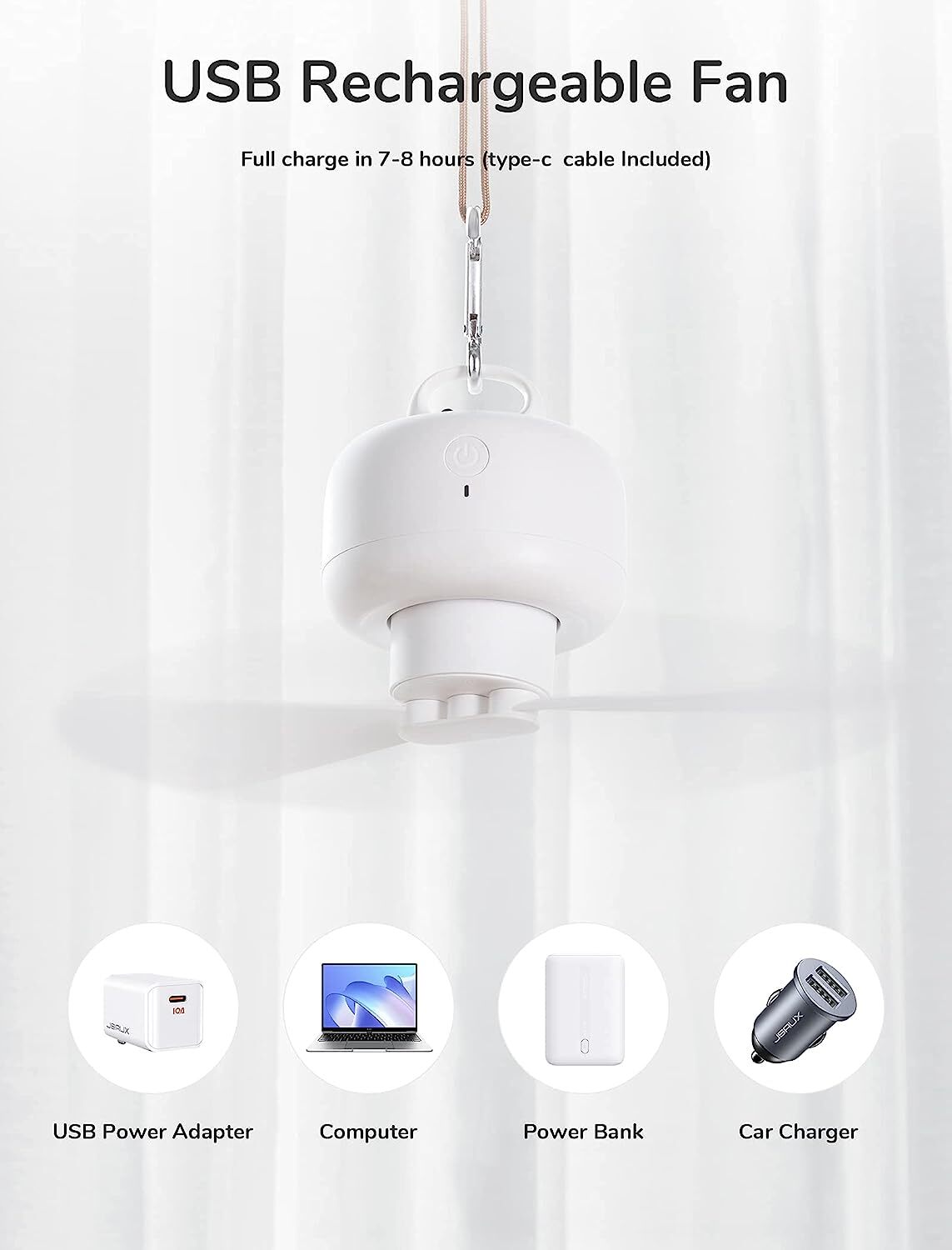 Dotato di batteria ricaricabile, puoi caricare il tuo ventilatore da campeggio USB tramite un caricatore da muro USB o un computer.
