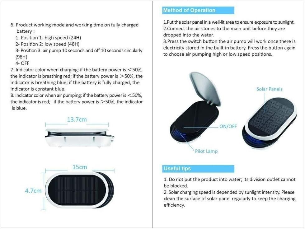 Kit ossigenatore portatile ad energia solare, pratico e portatile a bassa rumorosità per acquari