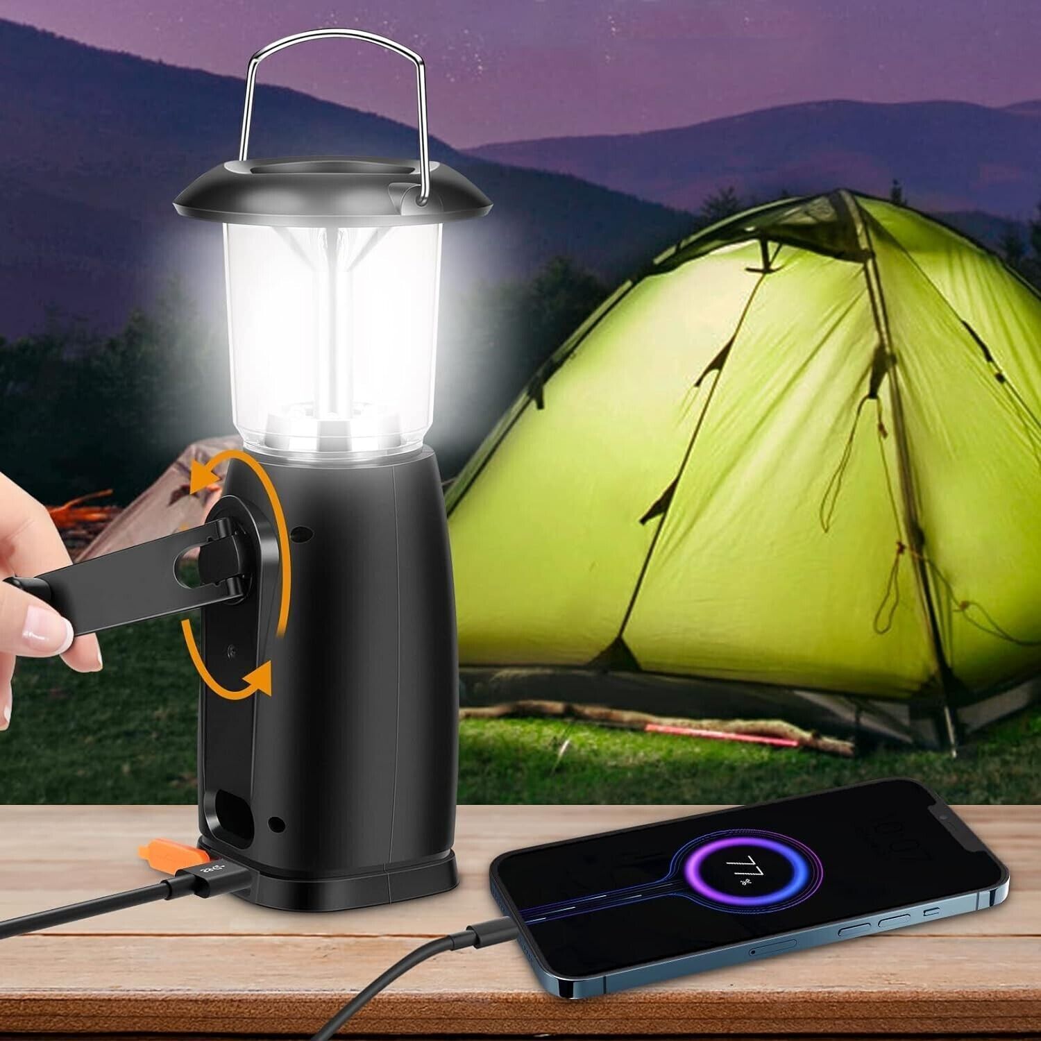 Lampada da campeggio a LED, lampada da campeggio, lampada solare a manovella USB, ricaricabile, lanterna da campeggio per pesca all'aperto, interruzioni di corrente, escursionismo, emergenza