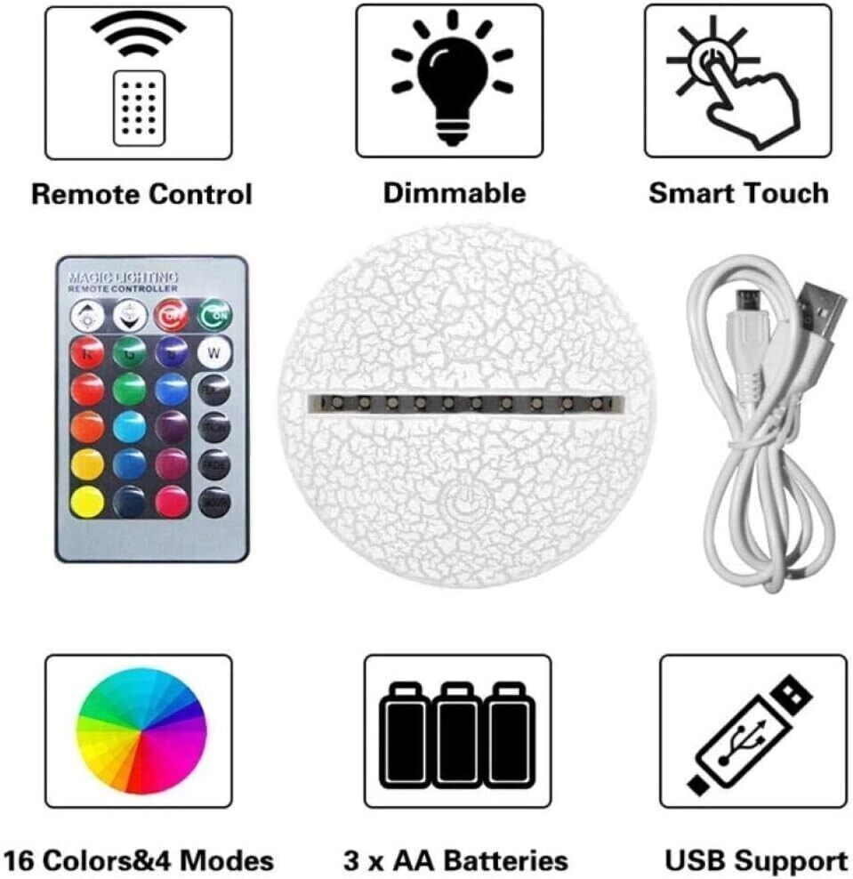 La lampada creativa visiva 3D è una luce innovativa per l'atmosfera artistica, una piastra guida ottica in acrilico che incide una varietà di grafica 2D, impatto visivo 3D. Effetti di luce unici, sorprendente lampada per decorazioni per la casa con illusione ottica visiva, rende la tua stanza più interessante.