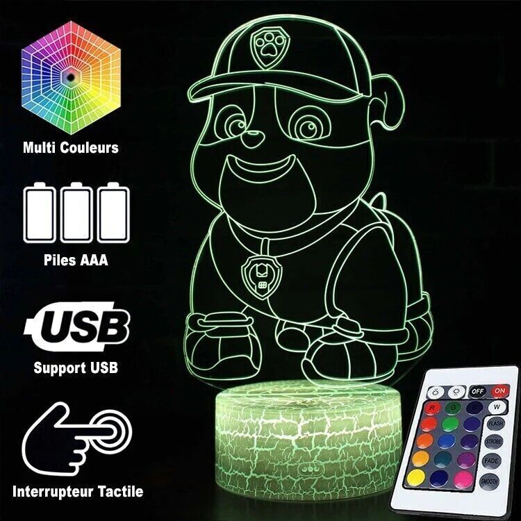 Lampada da illusione a LED 3D, Nuovo Bar Pub Birra Tavolo Luce notturna Creativa 16 colori USB Carica di alimentazione della batteria Lustro Decorazioni per la casa Umore Adatto per la decorazione del bar, Paw Patrol