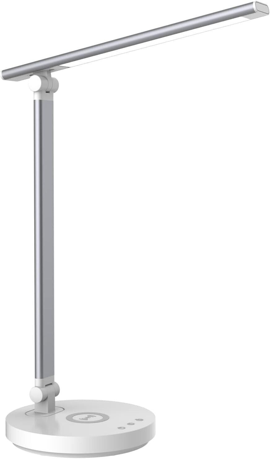 Lampada da scrivania a LED con caricabatterie wireless, lampada da scrivania con controllo touch con 5 modalità colore e funzione di regolazione completa, lampade da tavolo per la cura degli occhi per studio, lampada da ufficio con braccio regolabile (Argento)