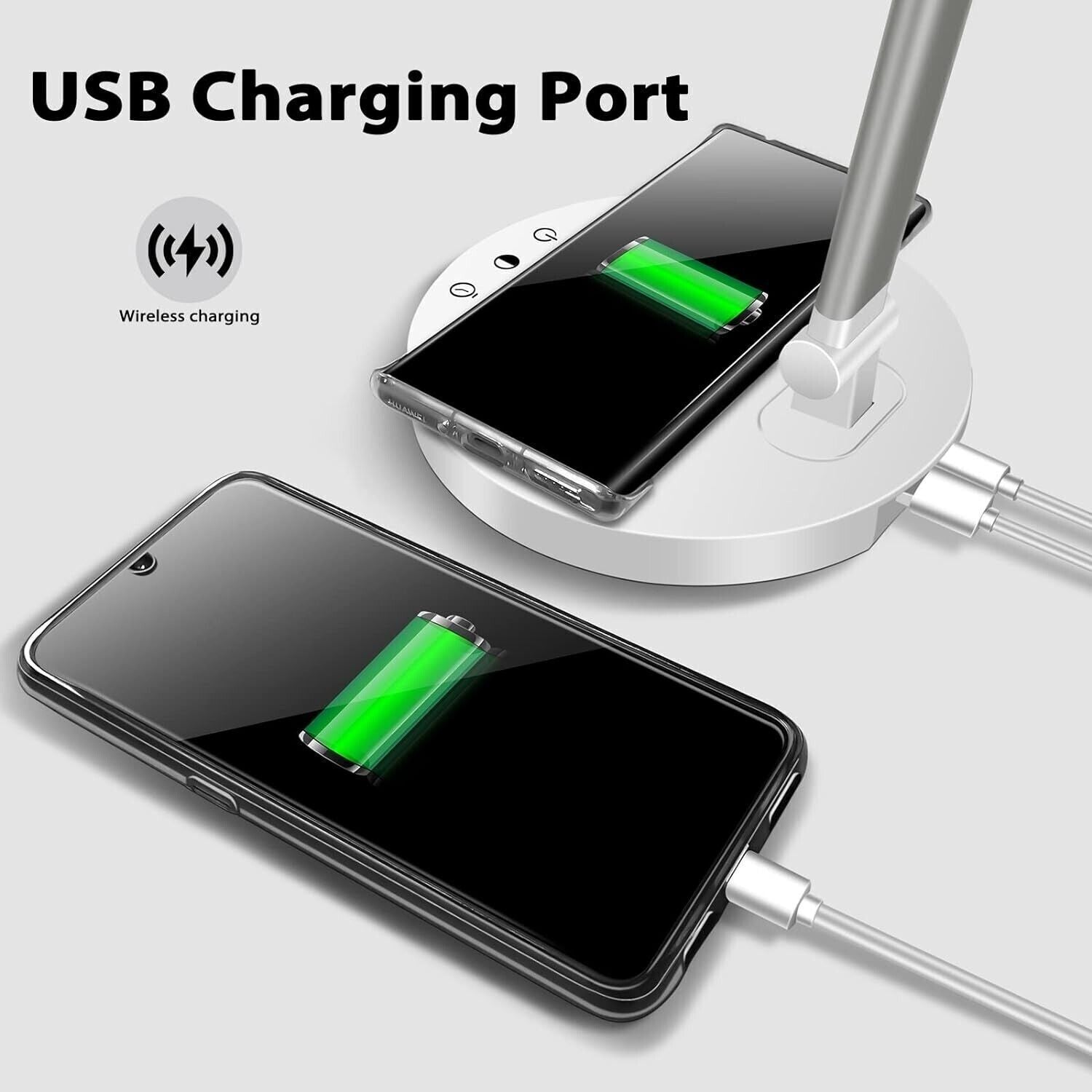 Lampade da scrivania con ricarica wireless: La base di questa lampada da scrivania come caricabatterie wireless, adatta per dispositivi con ricarica wireless QI, come iPhone 8, iPhone 8 Plus, iPhone X, iPhone Xs, iPhone Xs Max, iPhone Xr, iPhone 11, Samsung S8, Samsung S8 Plus, Samsung S9, Samsung S9 Plus e altri smartphone con funzionalità di ricarica wireless abilitata Qi.