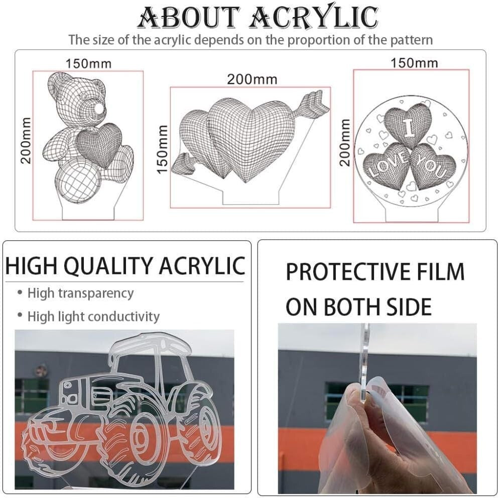 La luce notturna 3D è un nuovo regalo creativo, la piastra in acrilico ottico è incisa con varie grafiche 2D per produrre un impatto visivo 3D.