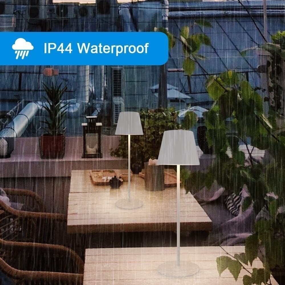 USO INTERNO ED ESTERNO: La lampada da tavolo a batteria LED RGB dimmerabile per giardino, balcone, patio e soggiorno. Grazie alla classe di protezione IP54 (a prova di spruzzi d'acqua), può resistere anche agli acquazzoni.