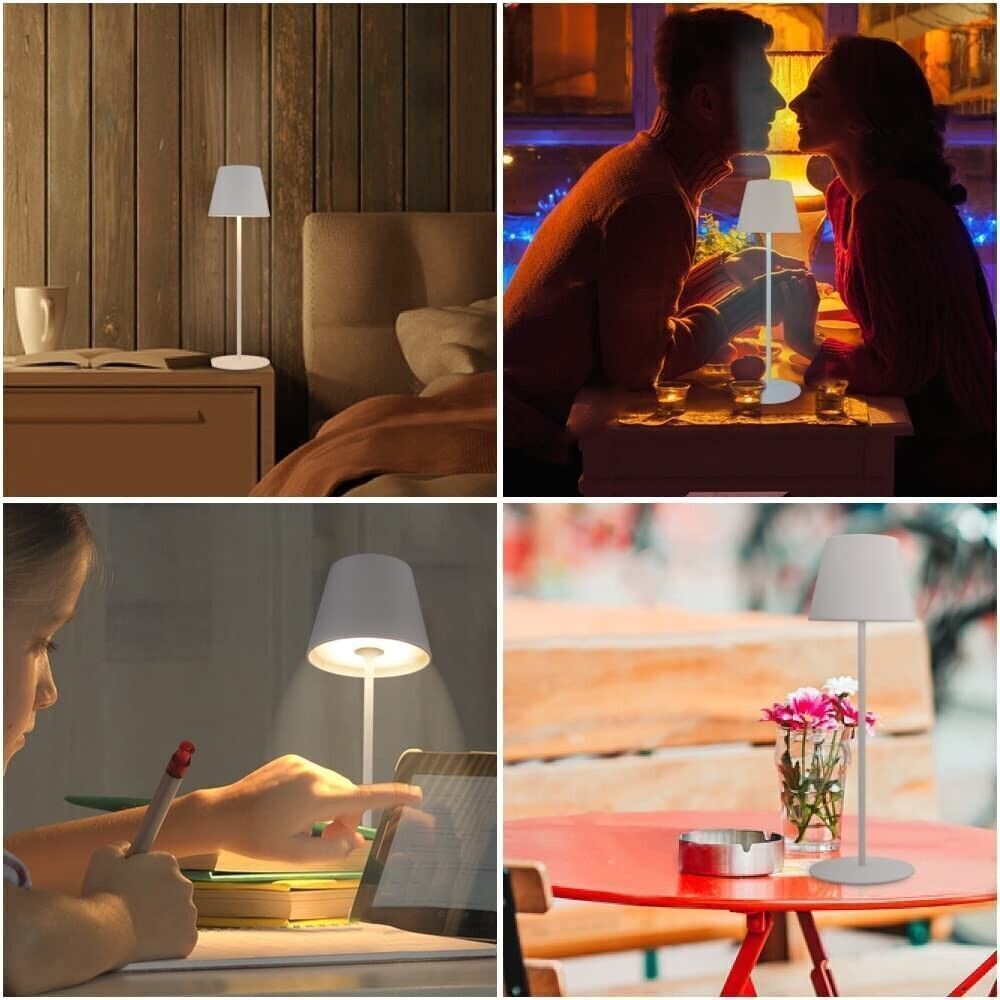 Lampada da Tavolo LED Ricaricabile, Lampada Touch Sense Dimmerabile 8 Colori, Impermeabile IP54 Cordless per Interni ed Esterni, Campeggio, Camera da Letto, Soggiorno, BBQ (A,Bianco) [Classe di efficienza energetica F]