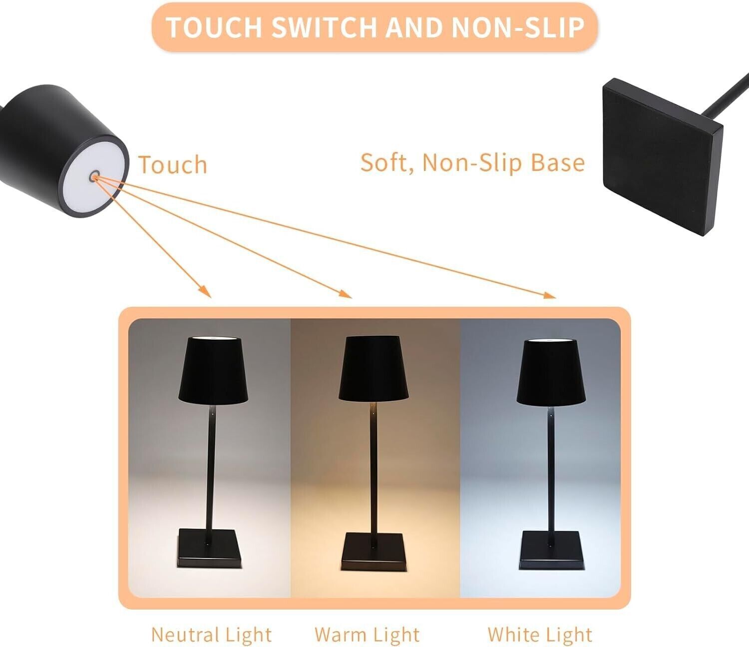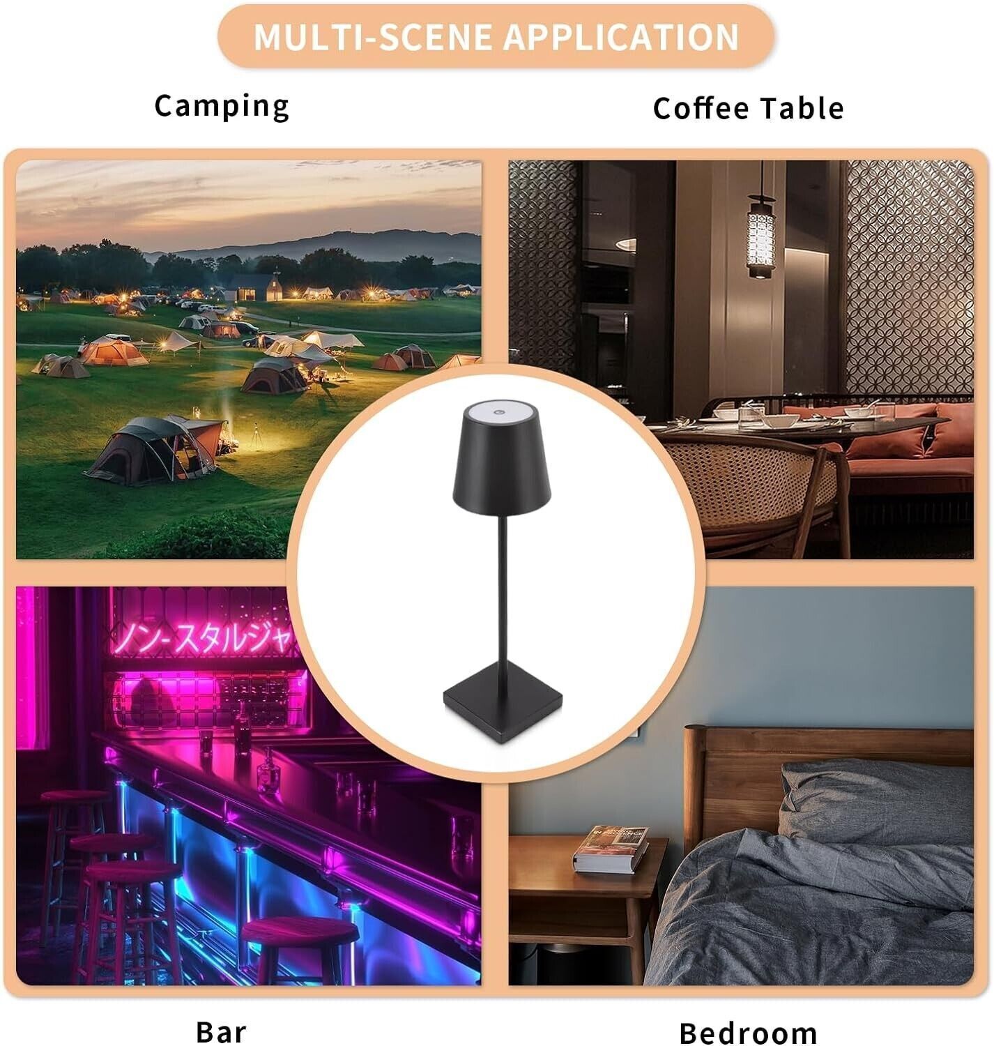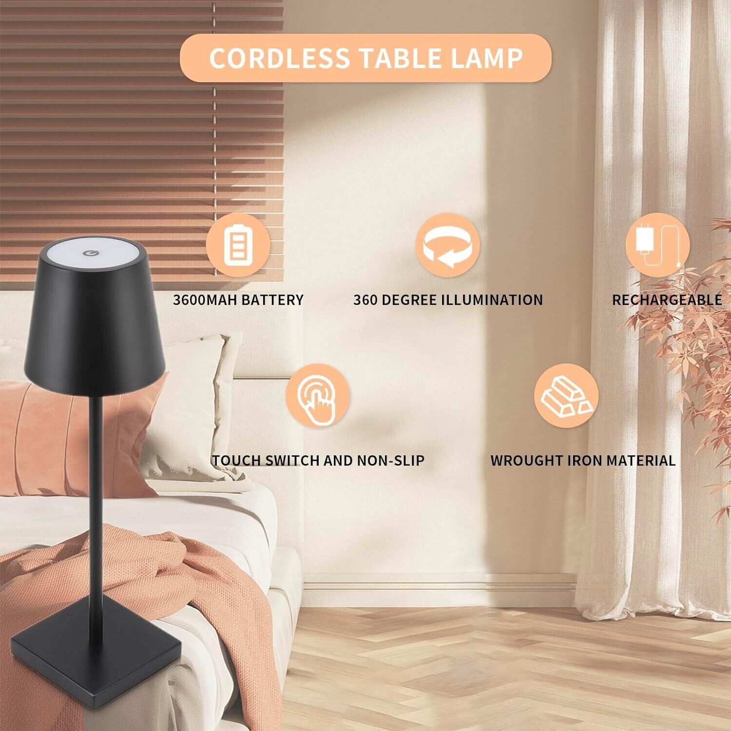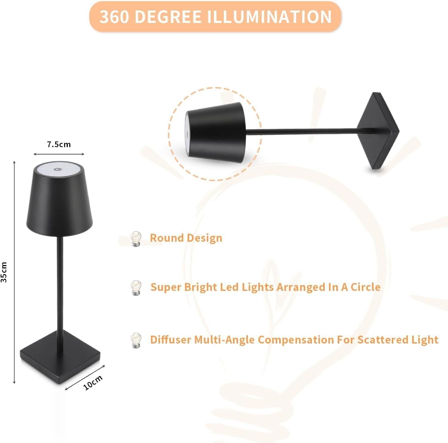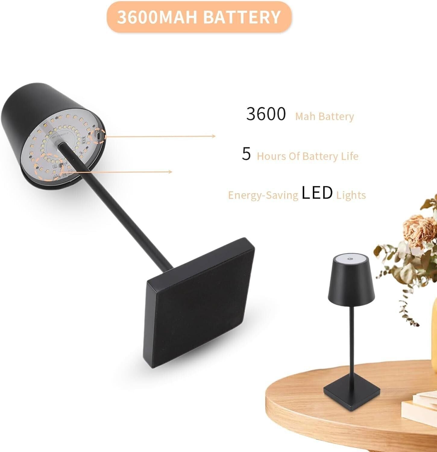 Lampada da Tavolo Senza Fili, Lampada da Tavolo a LED Ricaricabile, Lampada Touch a LED, Batteria da 3600 MAh, Illuminazione a 360 Gradi, per Camera da Letto, Cena di Coppia, (Nero)