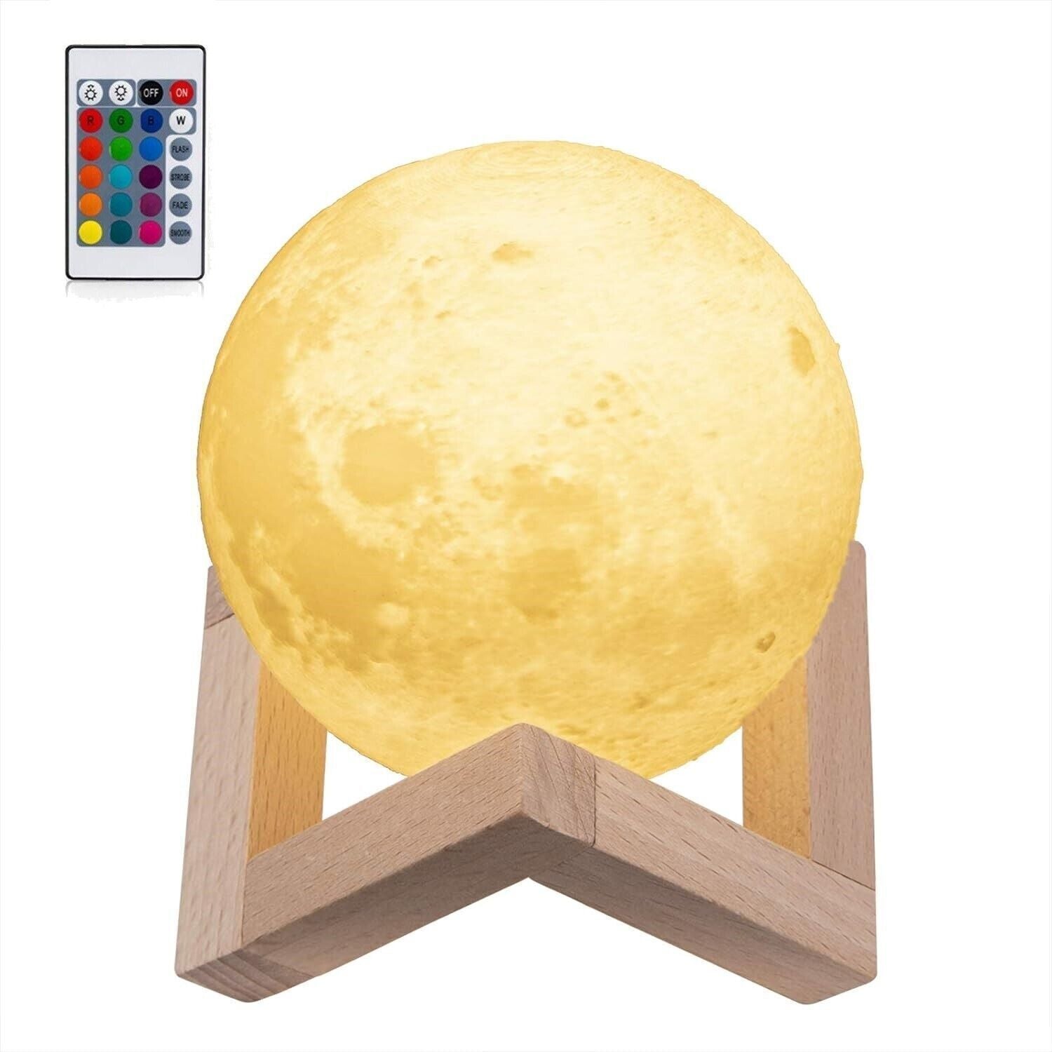 Lampada notturna 3D a forma di luna 3D, Luce notturna a 16 modalità RGB, controllo con telecomando, ricarica USB (10CM)