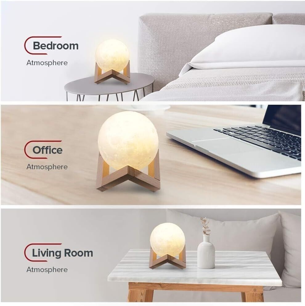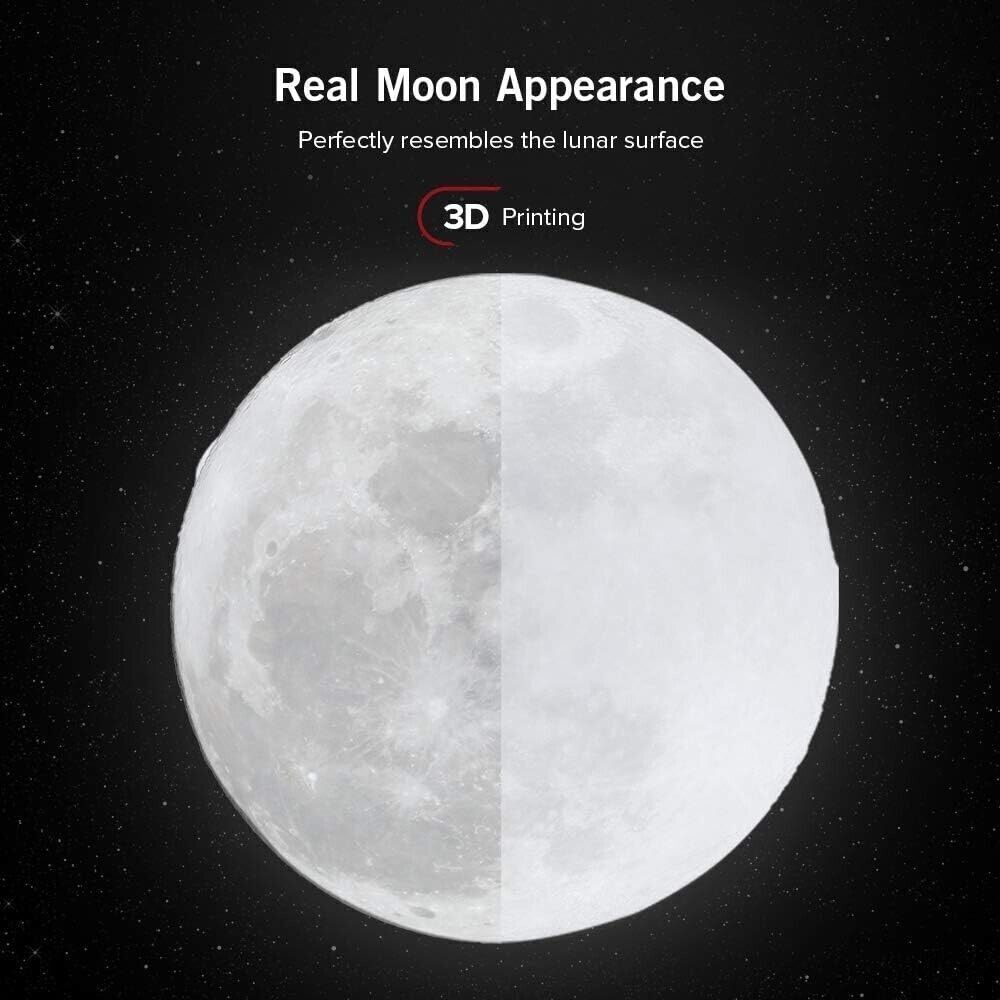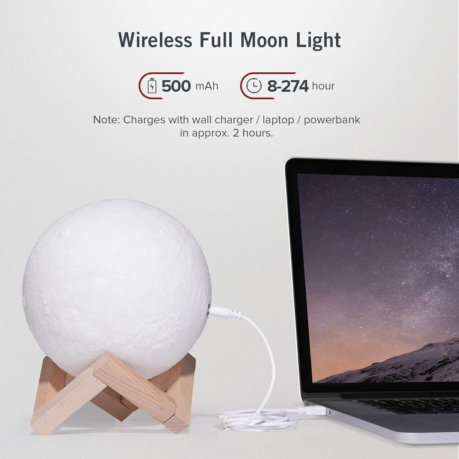 Facile da montare: Non è necessario alcun montaggio, caricarlo ed è pronto per l'uso, la lampada a luna 3D è dotata di un robusto supporto in legno che tiene la lampada, oltre ad un caricatore USB che ricarica la batteria integrata. La ricarica di 2 ore offre 8-24 ore di funzionamento.