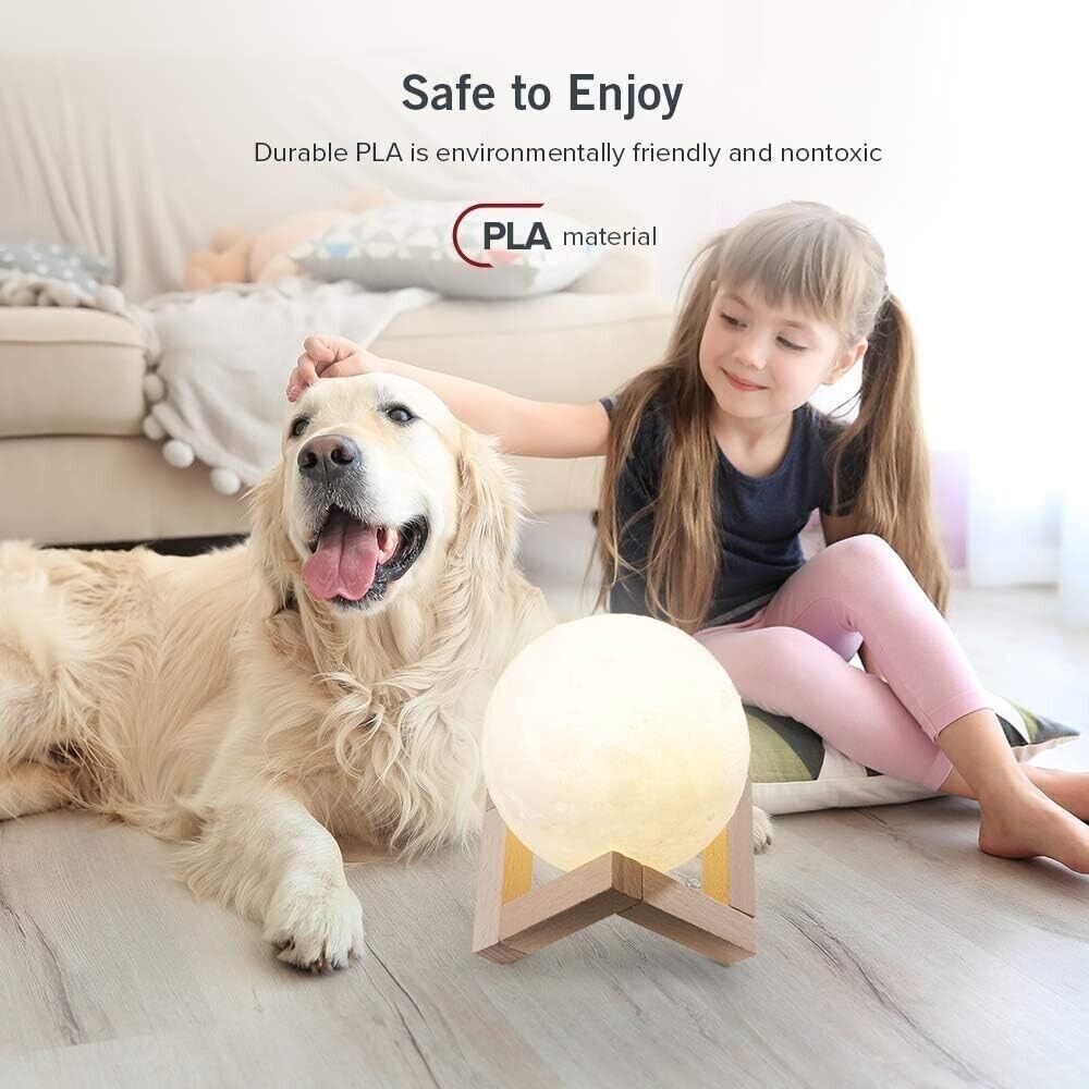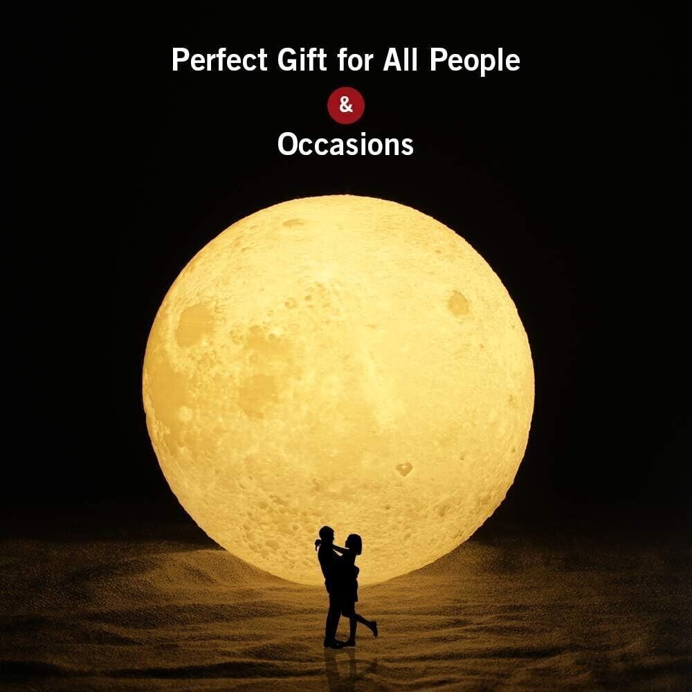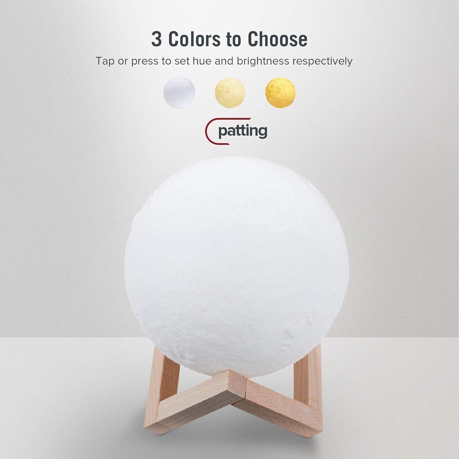 Facile da montare: Non è necessario alcun montaggio, caricarlo ed è pronto per l'uso, la lampada a luna 3D è dotata di un robusto supporto in legno che tiene la lampada, oltre ad un caricatore USB che ricarica la batteria integrata. La ricarica di 2 ore offre 8-24 ore di funzionamento.