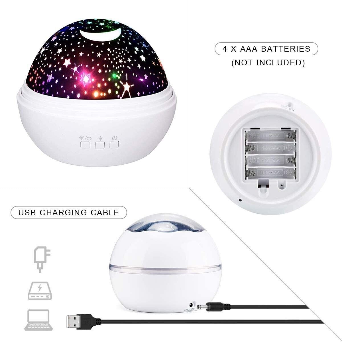 Lampada proiettore a forma di stella, girevole, a LED, proiettore per bambini
