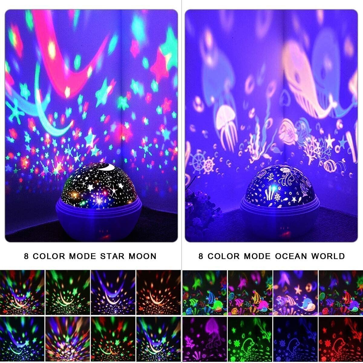 Lampada proiettore a forma di stella, girevole, a LED, proiettore per bambini, 8 luci romantiche, luce notturna per bambini, aiuto per addormentarsi per dormire o per feste