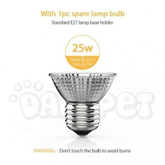 Adatto per rettili, anfibi, pesci, mammiferi, ecc. Con 1 lampadina di ricambio da 25 W. Supporta lampadine con potenza nominale fino a 75 watt.