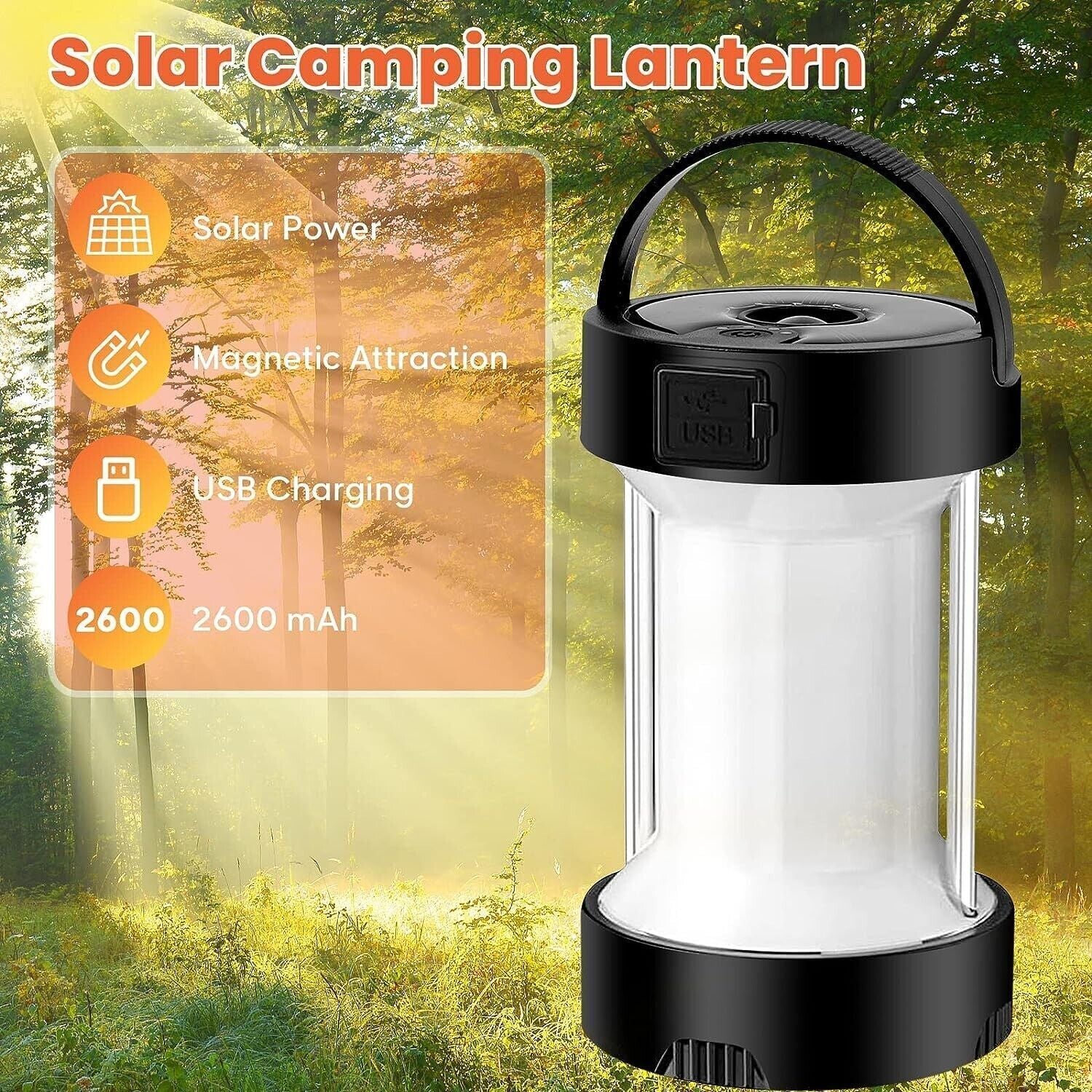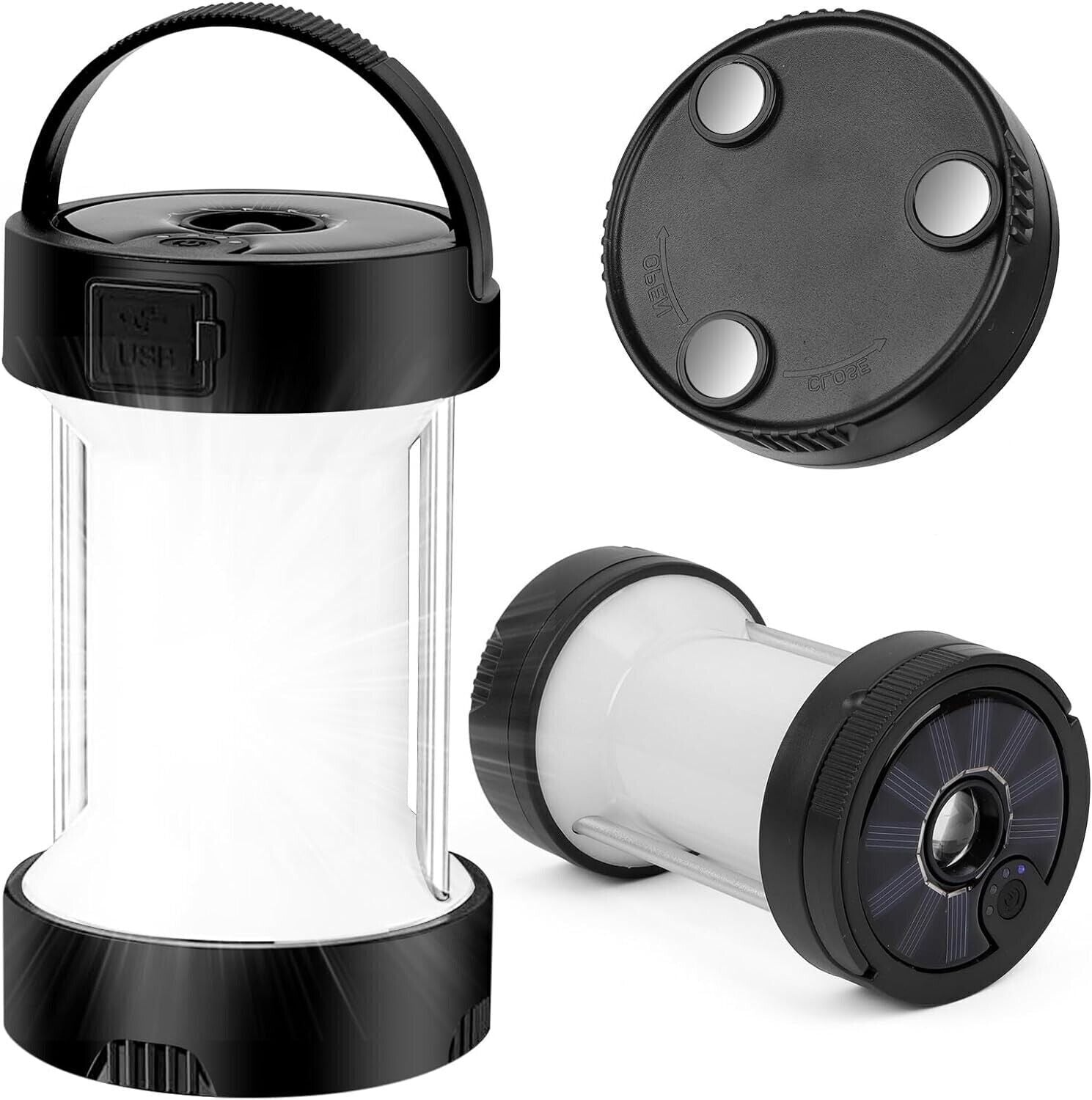 Lanterna da Campeggio a LED Ricaricabile,Lampada Magnetica Solare con Batterie