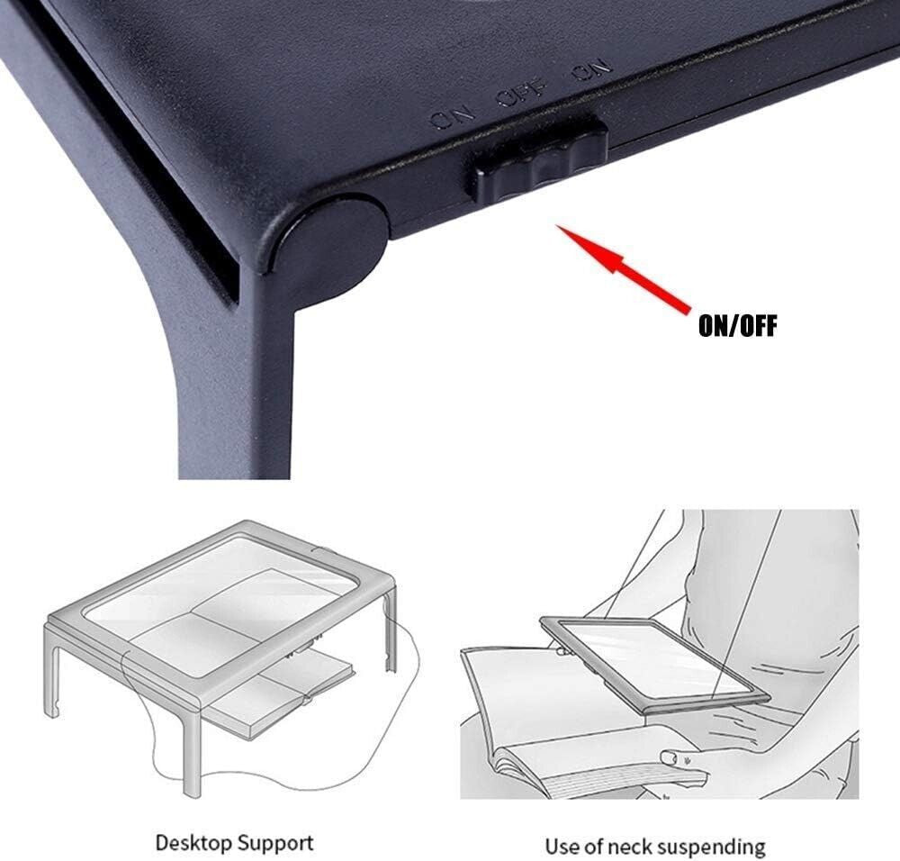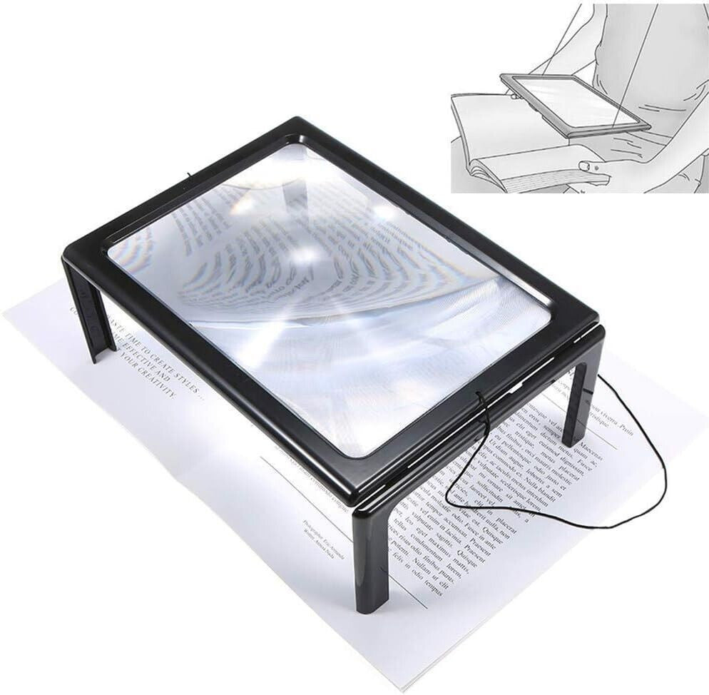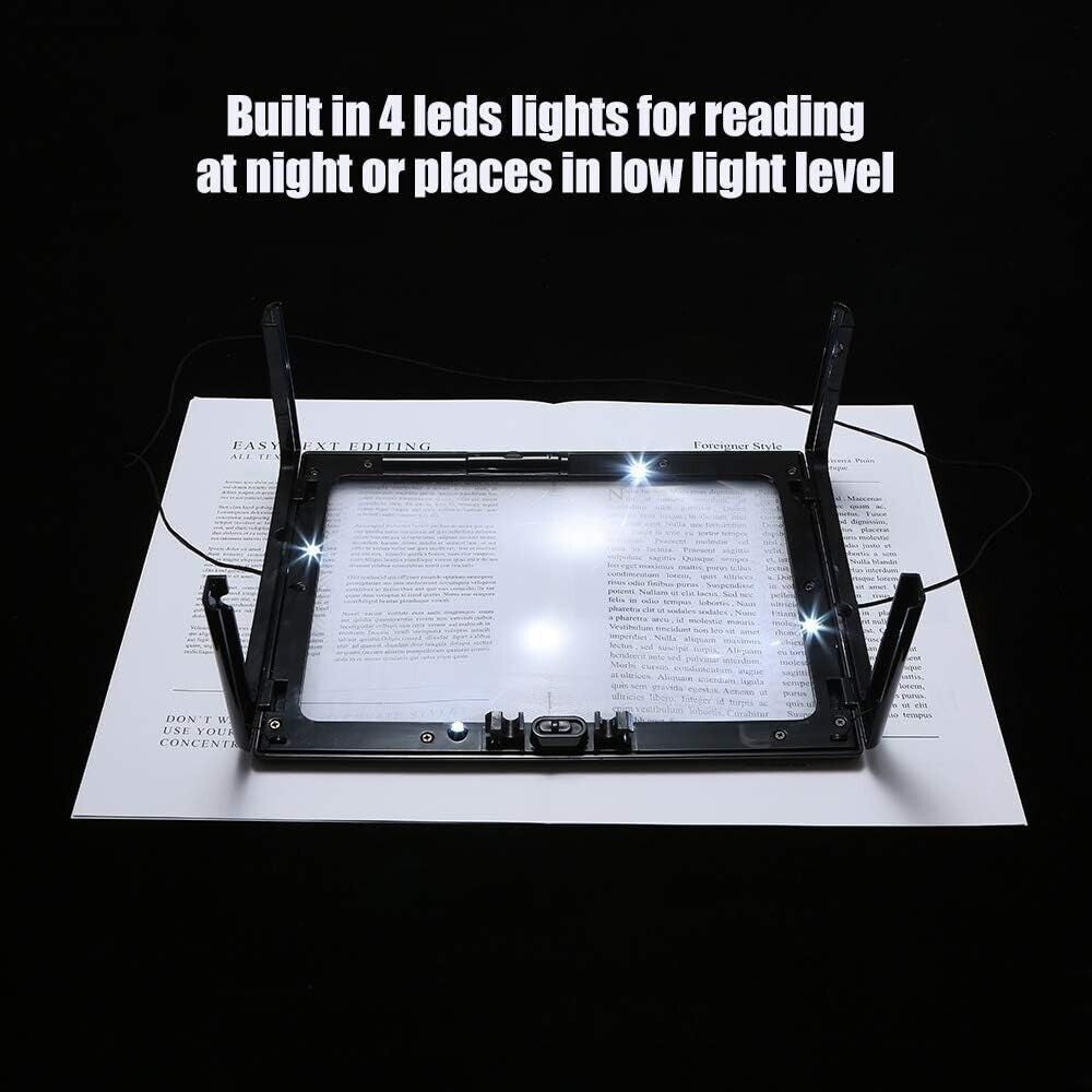 Lente D'ingrandimento 3X Da Tavolo A Pagina Intera,Con 12 Luci A LED, Supporto Pieghevole, Lente D'ingrandimento A Mani Libere Avanzata A4, Obiettivo 238 * 162MM, Lente D'ingrandimento Rettangolare