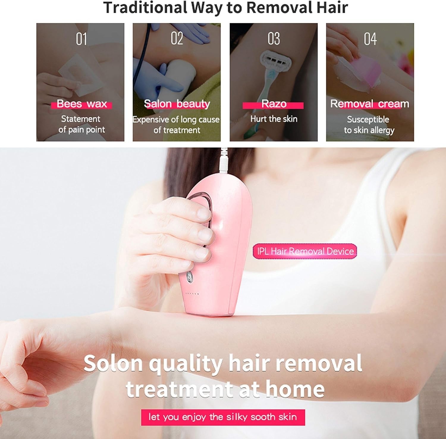 PRODOTTO DI QUALITÀ .La nostra epilazione IPL offre risultati professionali a un costo inferiore rispetto alla depilazione laser nei centri estetici. Disponiamo inoltre di un team di esperti nel controllo qualità che controlla i nostri dispositivi per offrirti il meglio. La nostra epilazione IPL è certificata CE, FCC e RHOS.