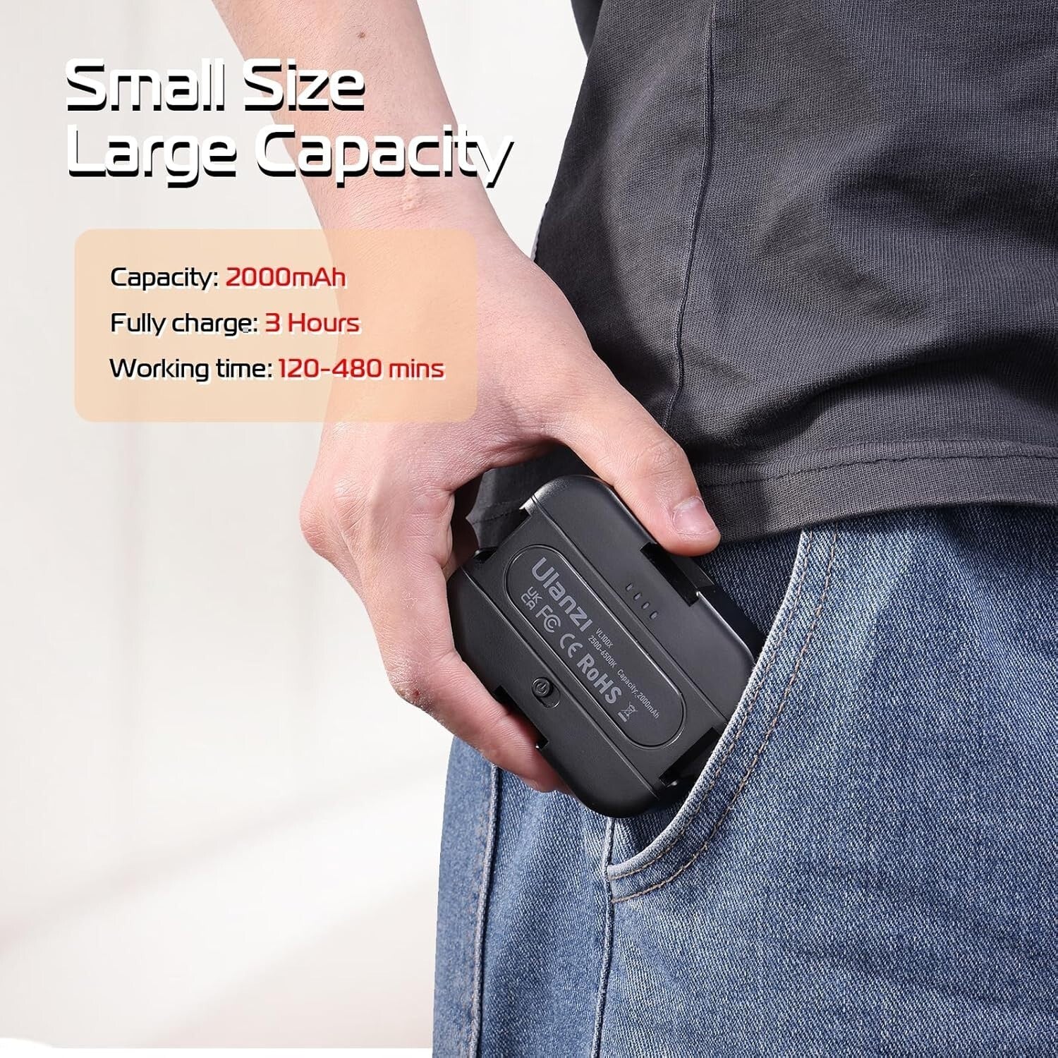 Ricarica rapida di tipo C: la luce della fotocamera portatile è dotata di una batteria al litio ricaricabile da 2000 mAh integrata, il tempo di ricarica è di 3 ore, la massima luminosità in uscita fino a 120 minuti, la minima luminosità in uscita fino a 480 minuti. Supporta la porta di ricarica di tipo C, alimentazione di lavoro 3,7 V, supporta la ricarica durante l'utilizzo.