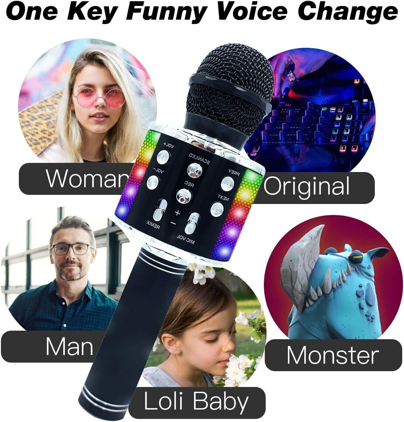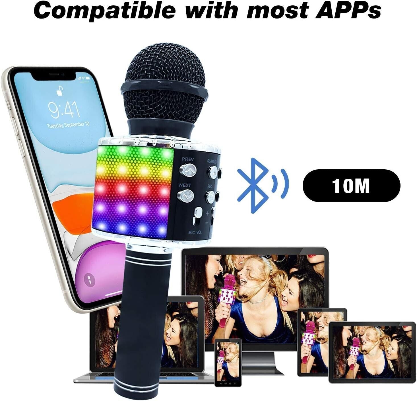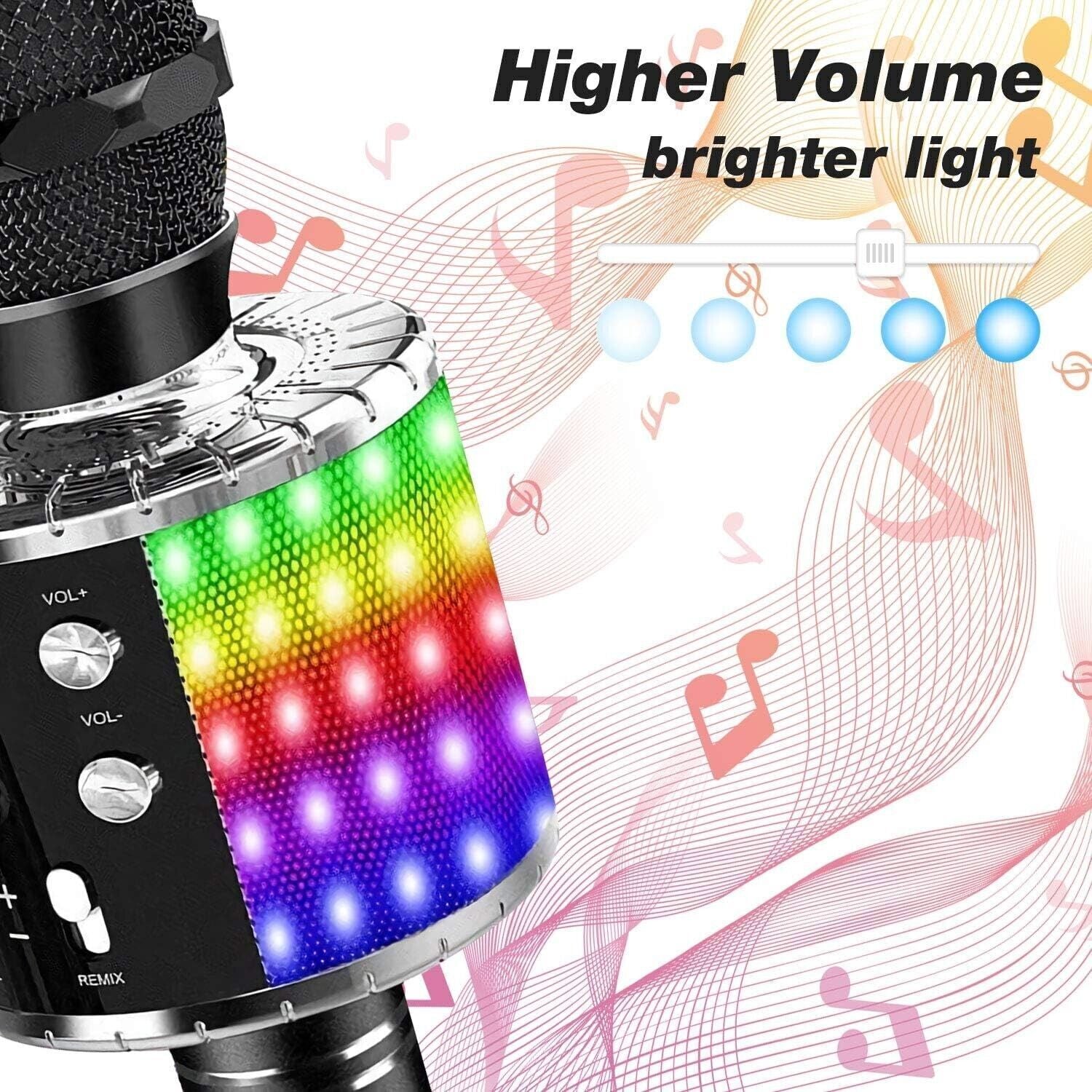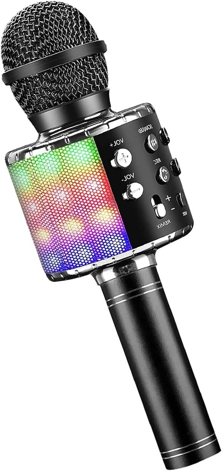 Microfono per karaoke wireless Bluetooth 4 in 1 con luci a LED, microfono