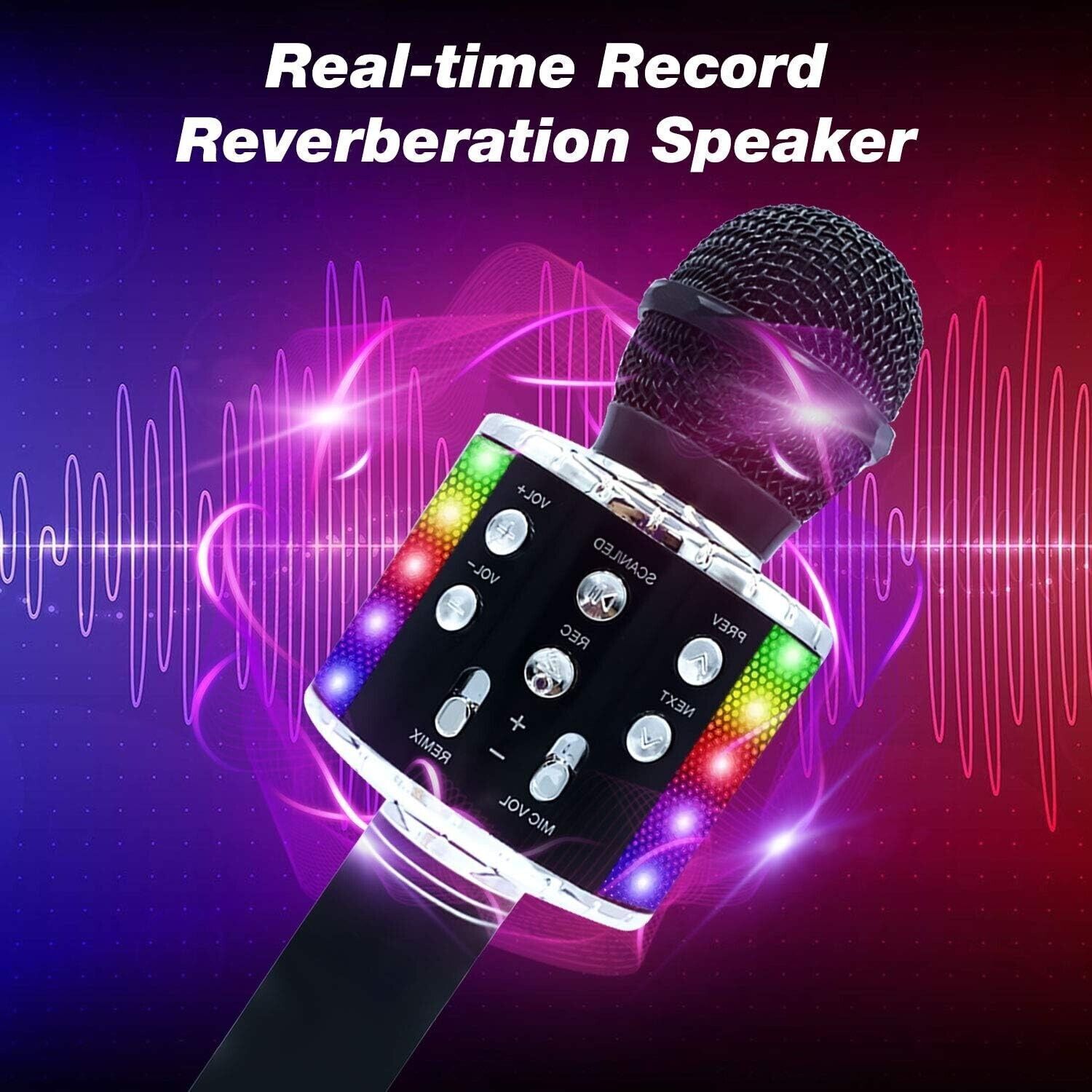 Microfono per karaoke wireless Bluetooth 4 in 1 con luci a LED, microfono portatile portatile per bambini, lettore KTV domestico con funzione di registrazione