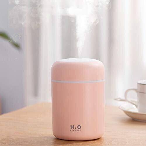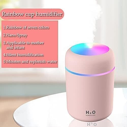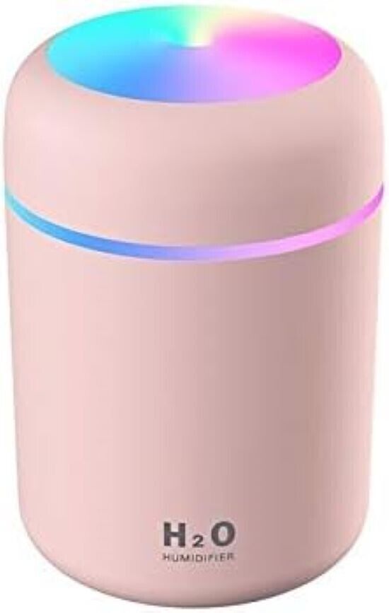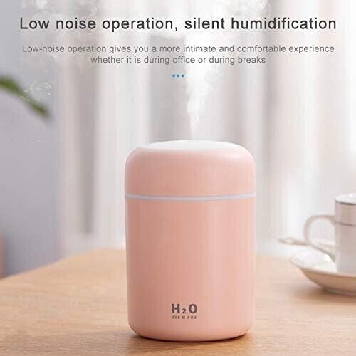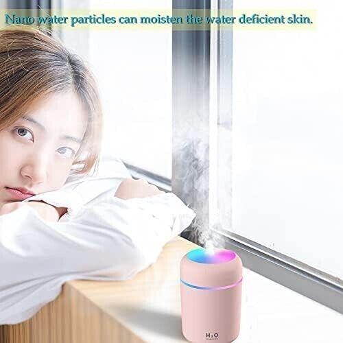 Mini umidificatore ad ultrasuoni con 2 modalità di nebulizzazione regolabili, spegnimento automatico e luce notturna colorata, portatile USB (rosa)
