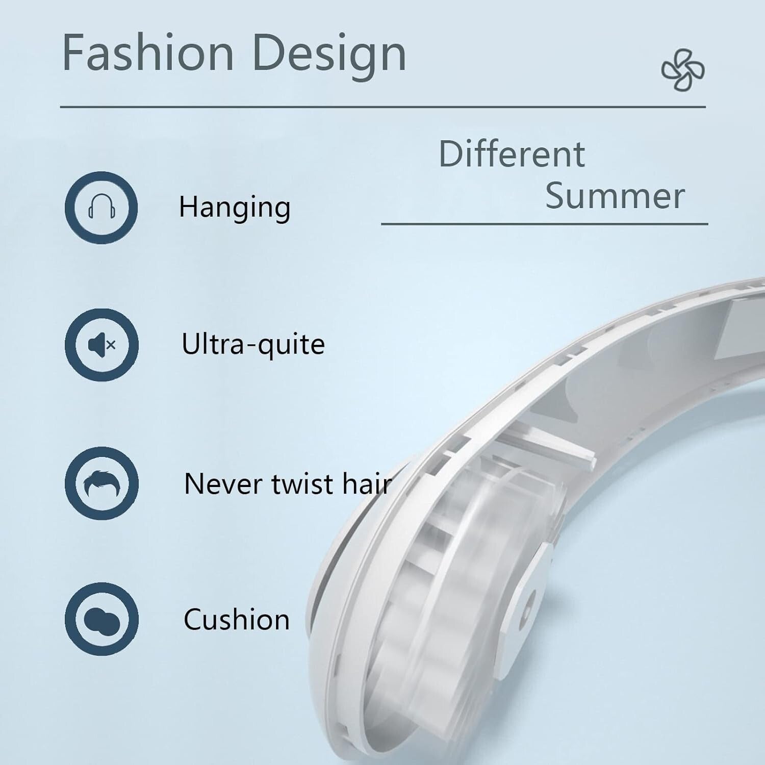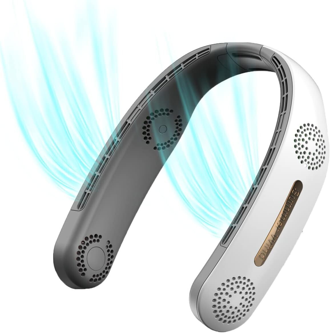 Design senza lama: ventilatore da collo portatile con design senza lama e design per cuffie. Quattro grandi prese d'aria, raddoppiano il vento. Sicuro, anziani e bambini possono anche usarlo con fiducia, le ragazze non