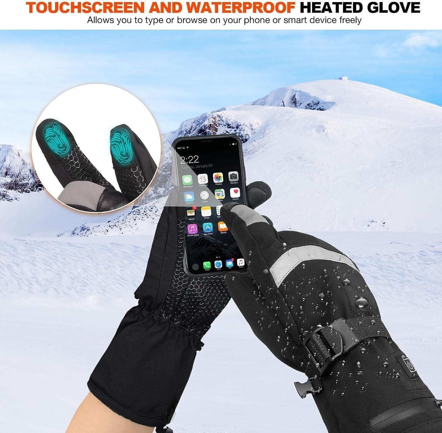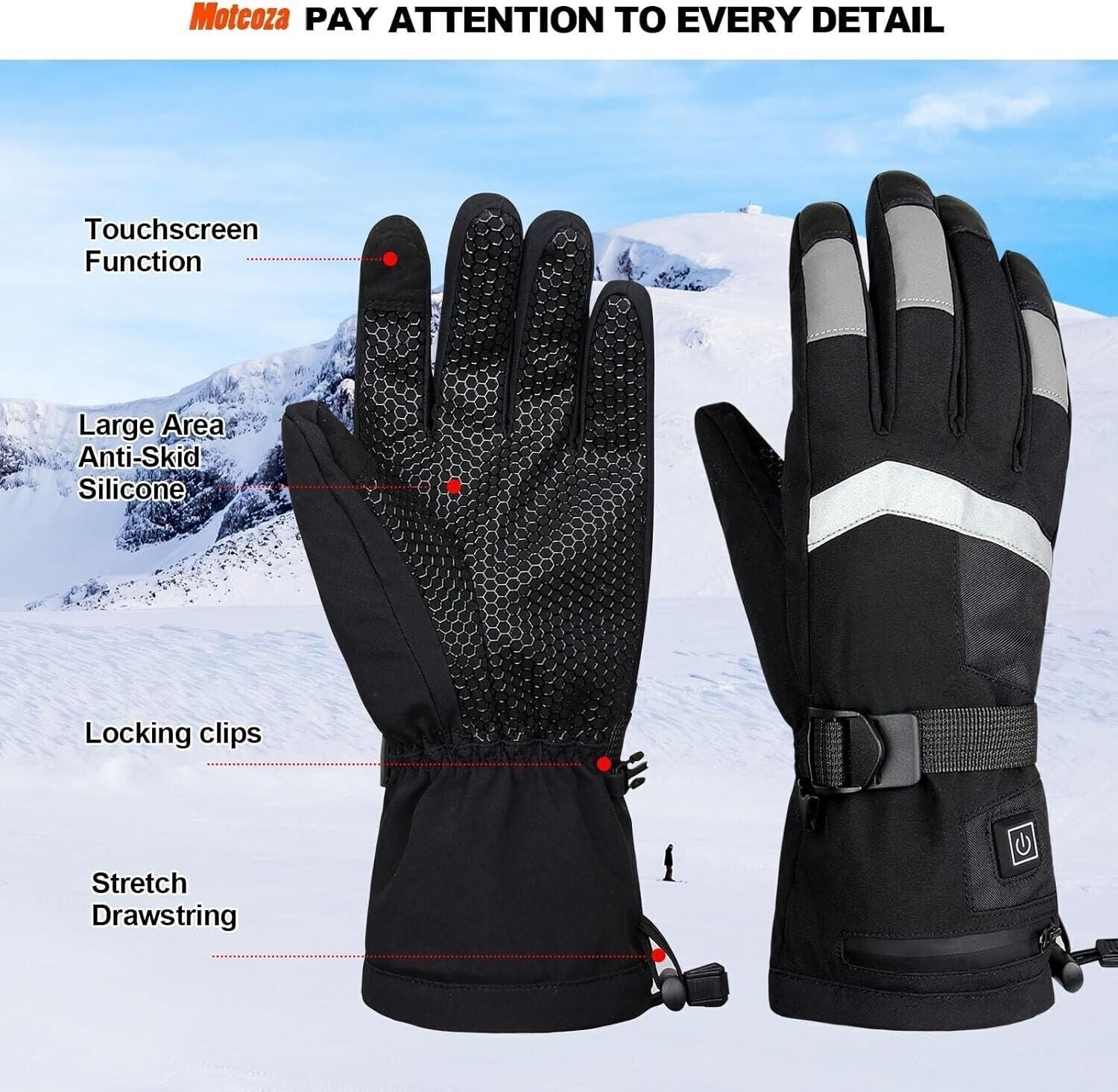 Moteoza Elettrici Guanti riscaldati Foderato con batteria Ricaricabile Invernali All'aperto Scaldamani, 3 Livelli di Calore Guanti Termici Impermeabili Guanti Caldi Touch Screen, Guanti sci moto