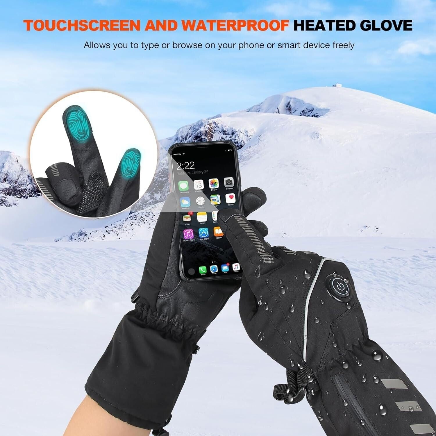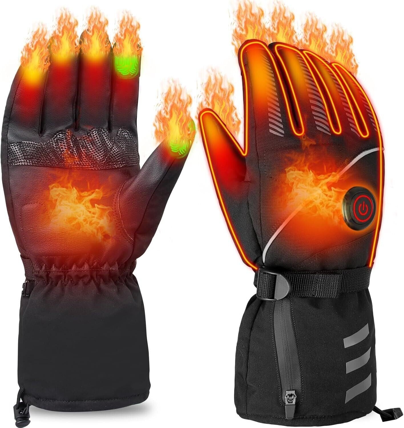Funzione touchscreen sensibile per pollice e indice. Questi guanti elettrici con sensori tattili sull'indice e sul pollice consentono di digitare liberamente o di navigare su siti web senza dover rimuovere i guanti da neve riscaldati. Le strisce riflettenti sul dorso dei guanti elettrici rendono più sicura la guida della moto di notte.
