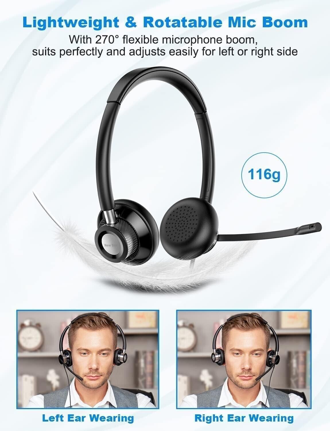Cancella Acquisizione Vocale. Cuffie con microfono la scheda audio incorporata con eliminazione del rumore di alta qualità nel microfono riduce bene il rumore ambientale durante le chiamate o le riunioni, una buona scelta per le chiamate vocali.Braccio per Microfono Leggero e Ruotabile. Le New Bee cuffia con filo USB sono progettate per una vestibilità leggera e confortevole a soli 116 g, senza alcun onere aggiuntivo quando vengono posizionate sulla testa. Il braccio del microfono flessibile a 270° è facile da regolare e si adatta perfettamente sia all'orecchio sinistro che a quello destro.Comodo da Indossare. Le cuffie pc per computer con archetto regolabile si adattano a diverse dimensioni della testa. I cuscinetti auricolari morbidi e traspiranti consentono un comfort ottimale senza affaticare le orecchie per il lavoro quotidiano..