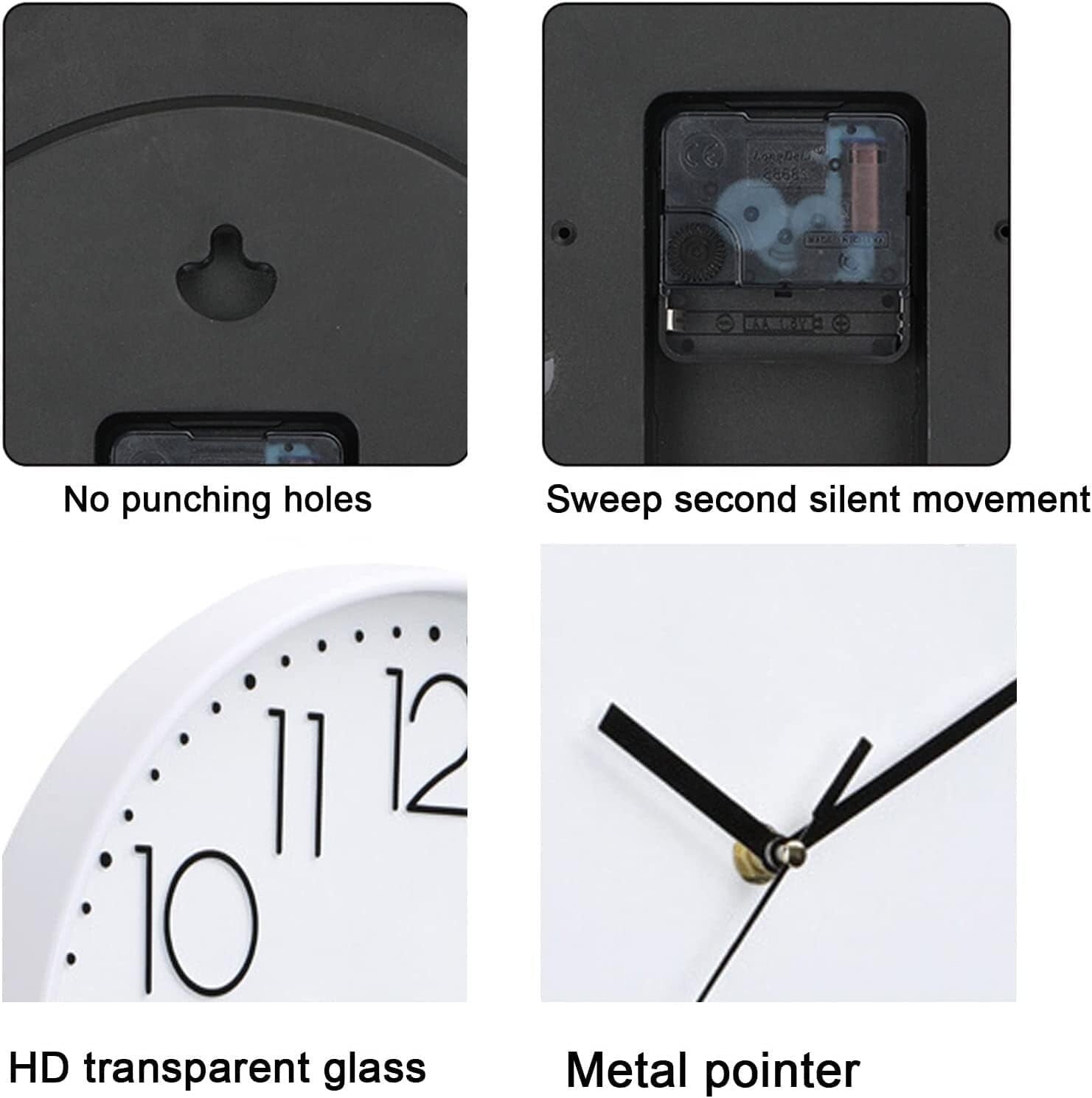 Orologio da parete moderno silenzioso: l'orologio silenzioso senza ticchettio utilizza un movimento ampio per garantire un ambiente silenzioso, movimenti al quarzo precisi garantiscono un tempo preciso.
