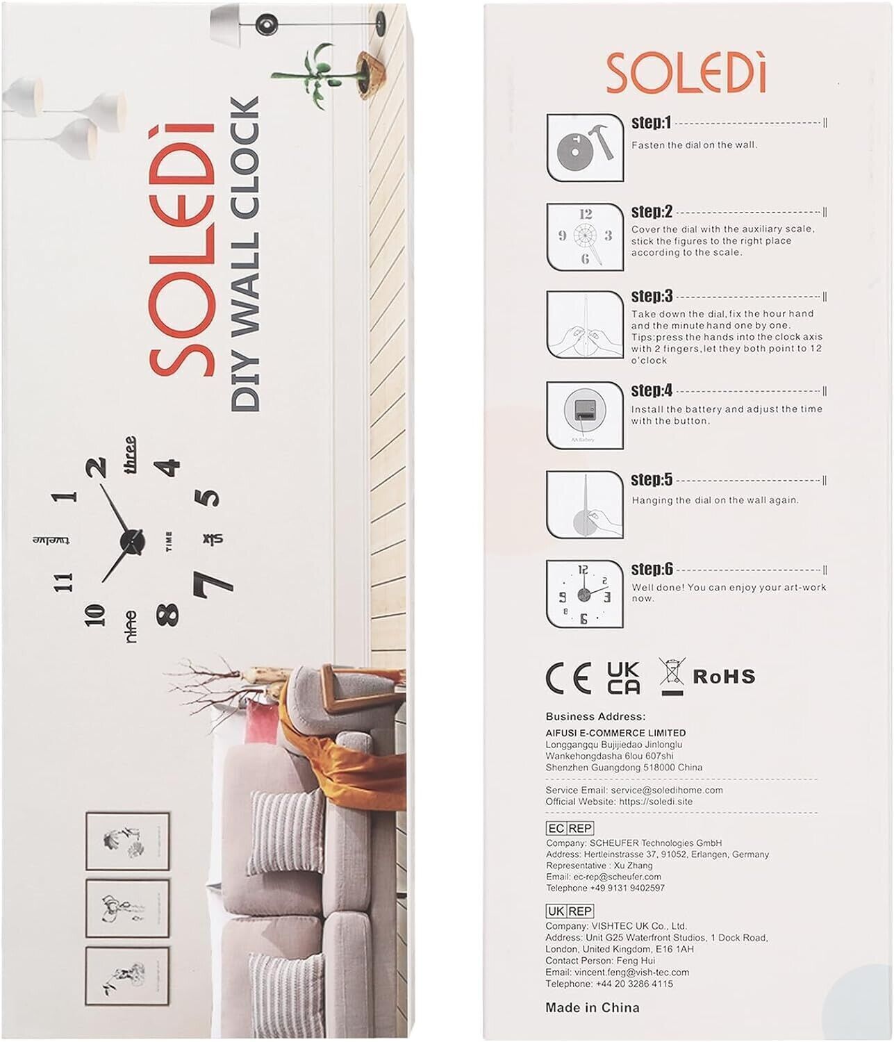 Confezione Squisita, Regalo Fantastico: SOLEDI orologio è un orologio da parete moderno, orologio da parete decorativo, ideale per decorare soggiorno, camera da letto, corridoio, ristorante, ufficio, albergo. Dotato della confezione squisita, è un regalo meraviglioso per la famiglia e gli amici.