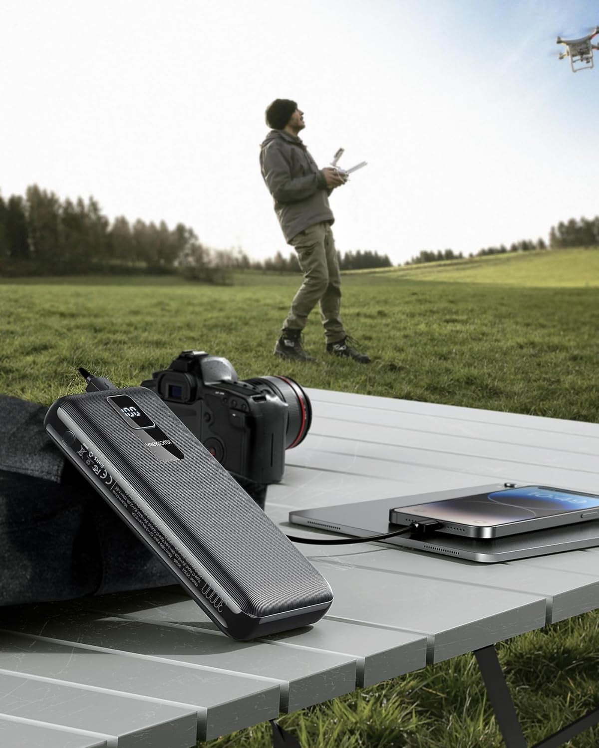 Ricarica rapida da 20 W: con una potenza di uscita massima di 20 W, può rilevare tutti i dispositivi collegati e distribuire efficacemente la corrente in uscita fino a 9 V/2,2 A. La porta USB-C supporta sia l'ingresso che l'uscita. Può essere caricato dallo 0% alla piena capacità in sole 9 ore tramite un adattatore di alimentazione USB PD da 9 V/2 A, o in 14 ore tramite un adattatore di alimentazione da 5 V/3 A.