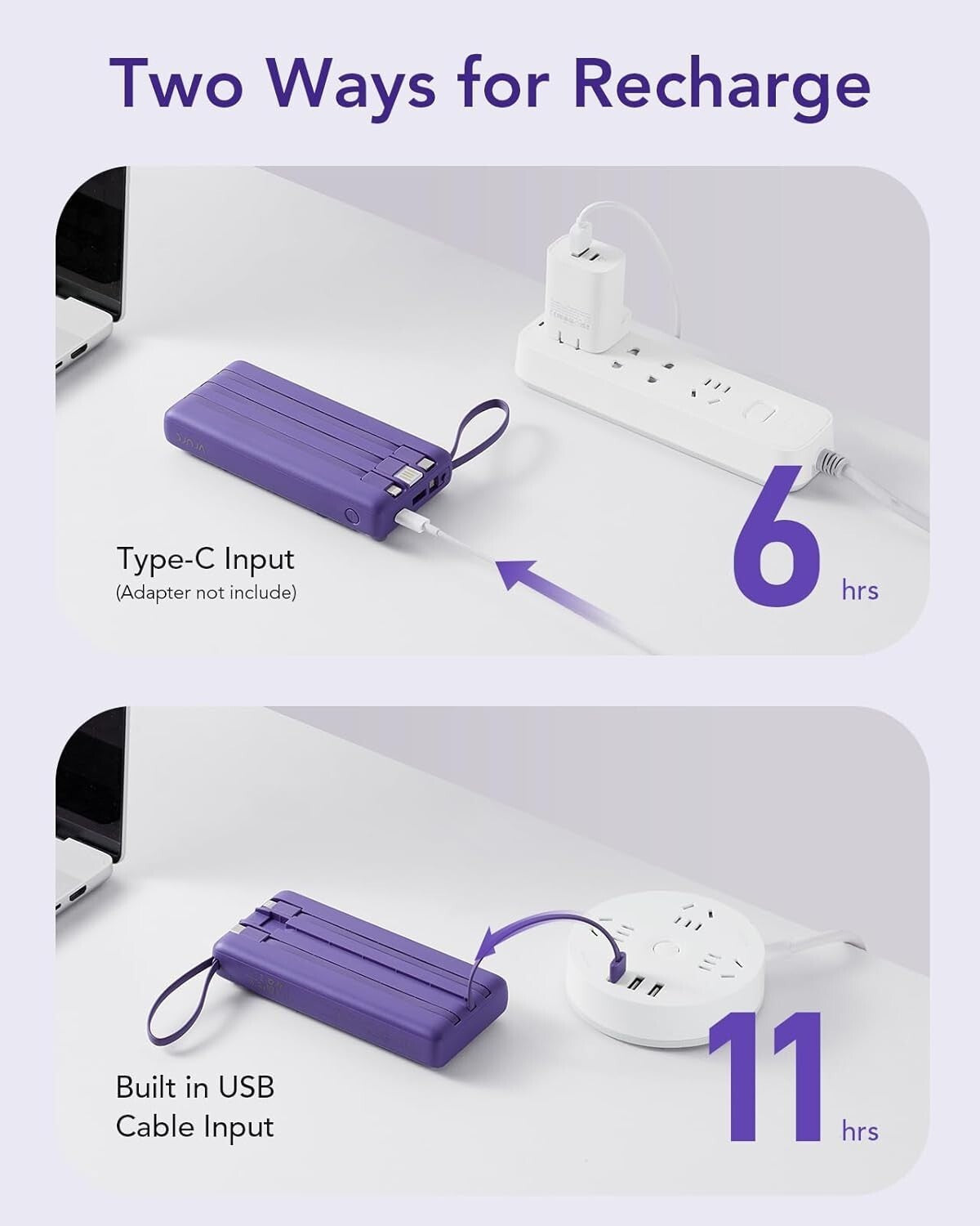 Power bank con Cavi Incorporati 20000mAh, PowerBank USB C a Ricarica Rapid VRURC