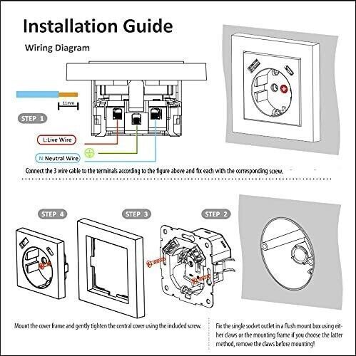 Per esigenze quotidiane: la nostra presa a incasso è adatta per elettrodomestici tradizionali come computer portatili, lampade da scrivania, frigoriferi, macchine da caffè, forni, microonde, ecc. Potenza fino a 4000 Watt (massimo 250 V, 16 A. Adatto per camera da letto, cucina, bagno, ufficio, metropolitana, decorazione hotel e altre occasioni.