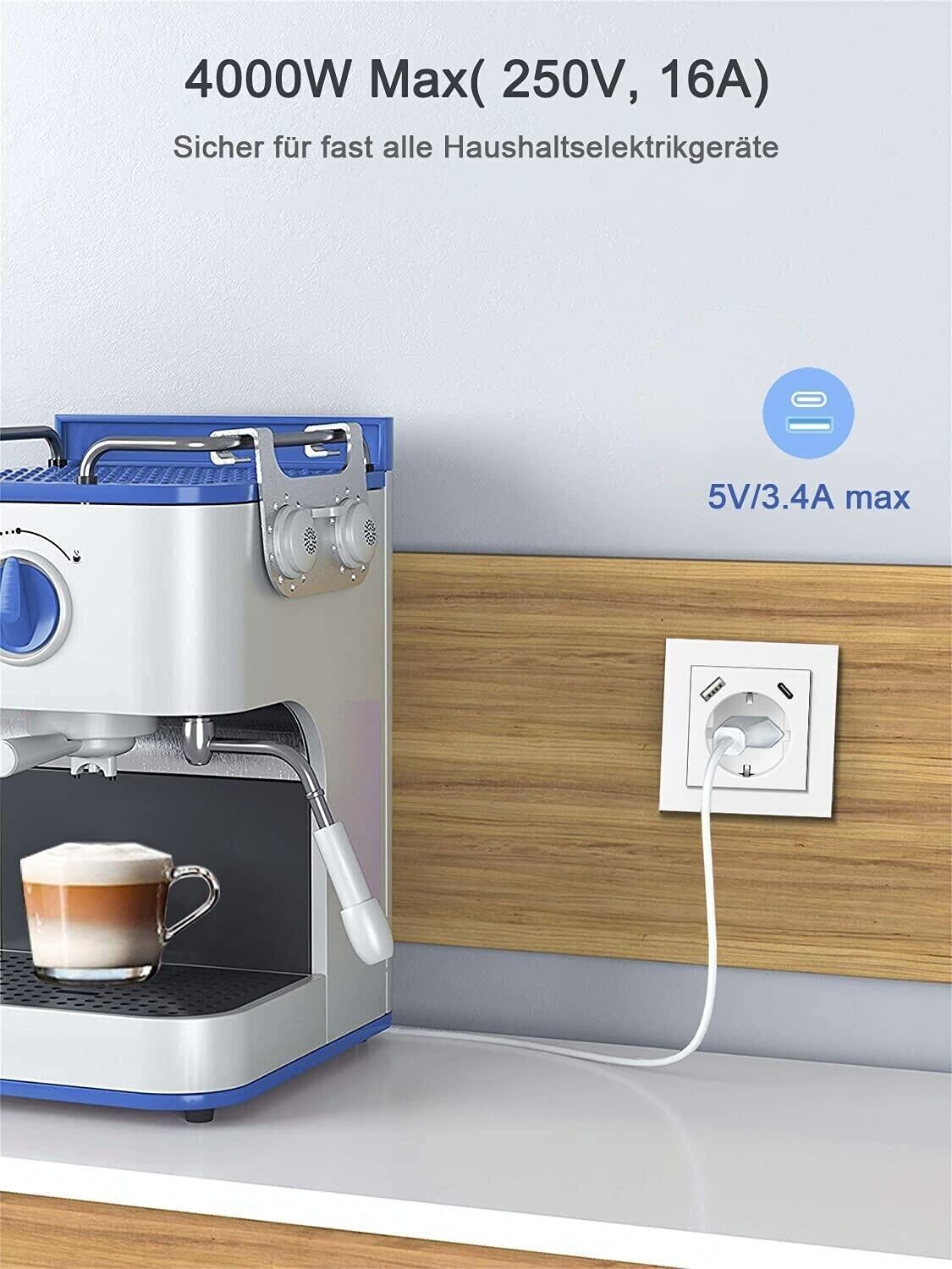 Presa USB, presa con caricatore USB e 1 porta di tipo C da 3,4 A, bianco puro