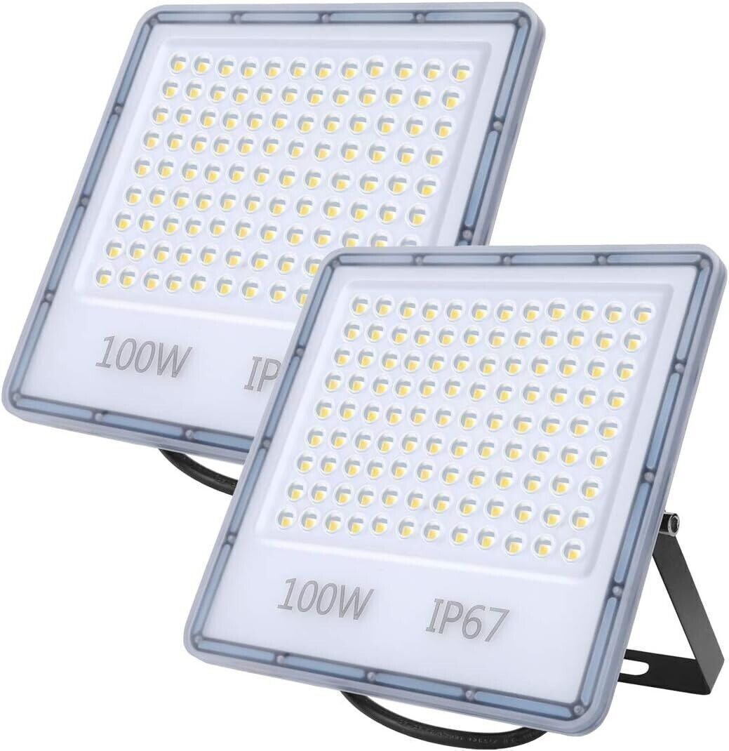 Proiettore a Led da Esterno 100W 10000LM Luce di Sicurezza Impermeabile IP67 Applique da Lavoro Illuminazione, Bianco Freddo 6000-6600K Proiettore a Led Esterno per Garage, Giardino, Cortile Garage 2pcs