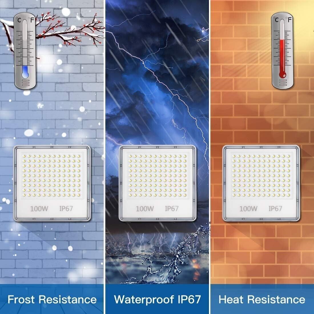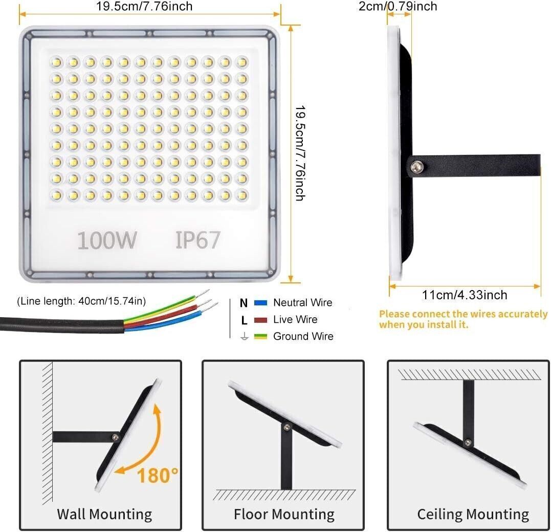 Facile da installare: Le luci esterne alimentate a rete da 100 W sono più durevoli semplicemente e collegano il filo conduttivo, la lunghezza della linea fissa la luce e si adatta all'angolazione preferita (angolo regolabile di 180 °). Adatto sia per uso interno che esterno.