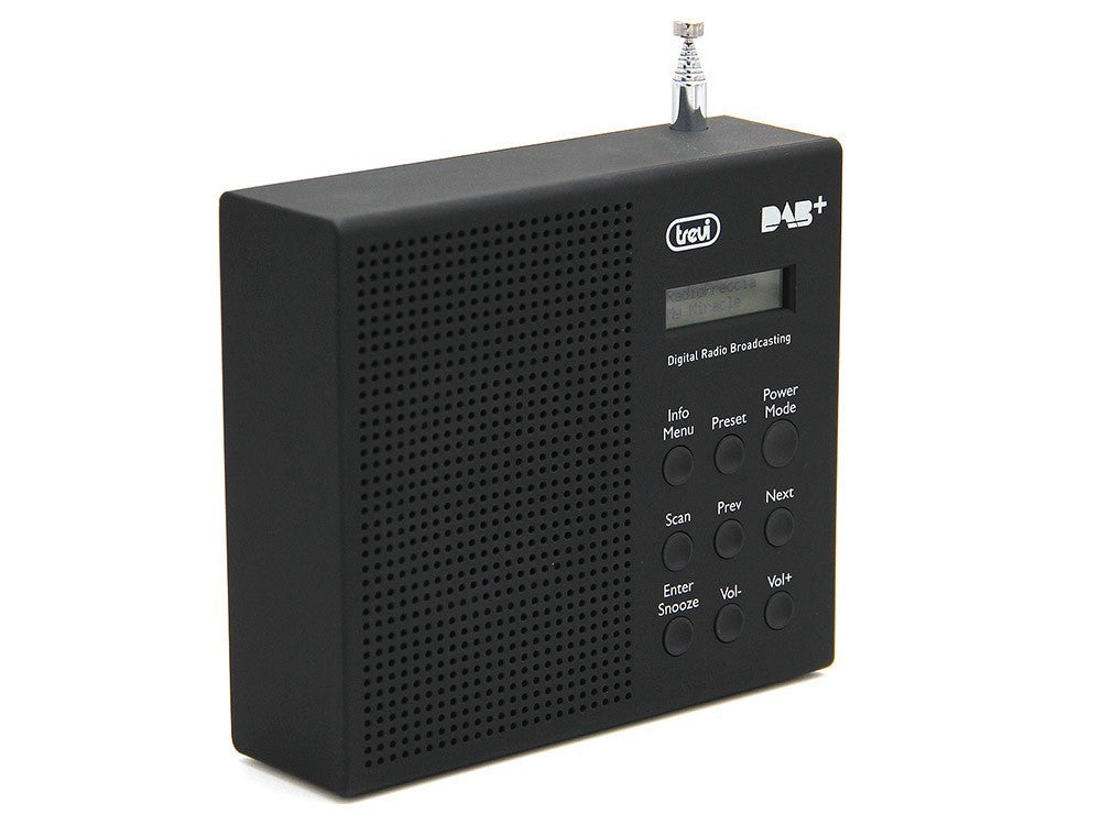 La Radio Digitale Trevi è un dispositivo portatile che può essere portato con se per un escursione, una vacanza o in campeggio. È dotata di ricevitore di onde DAB, DAB+ e FM ed è possibile memorizzare fino ad un massimo di 10 stazioni in DAB e 10 stazioni in FM. Il display è ad alta leggibilità ed è presente un'antenna inclinabile per una ricezione perfetta. Inoltre si possono selezionare 2 sveglie con allarme radio o suoneria.