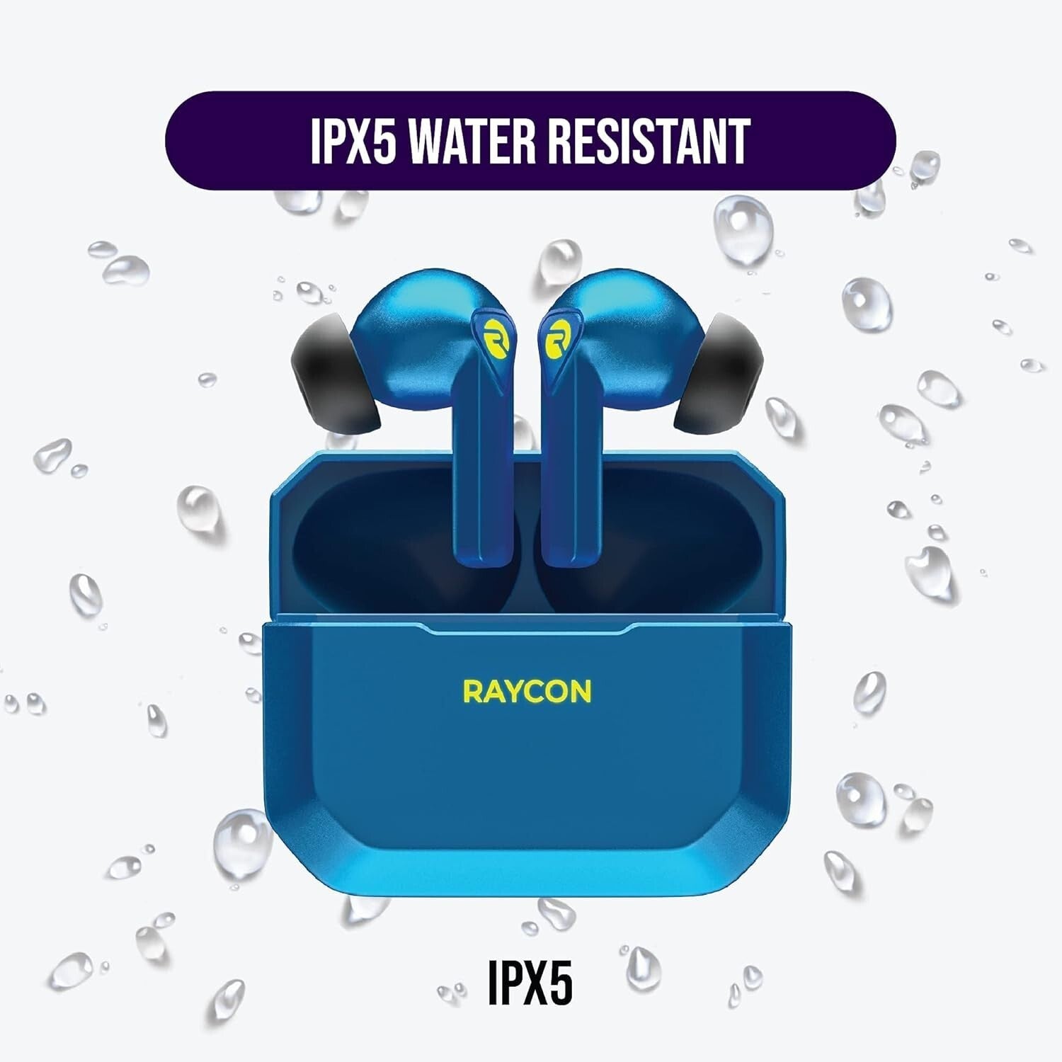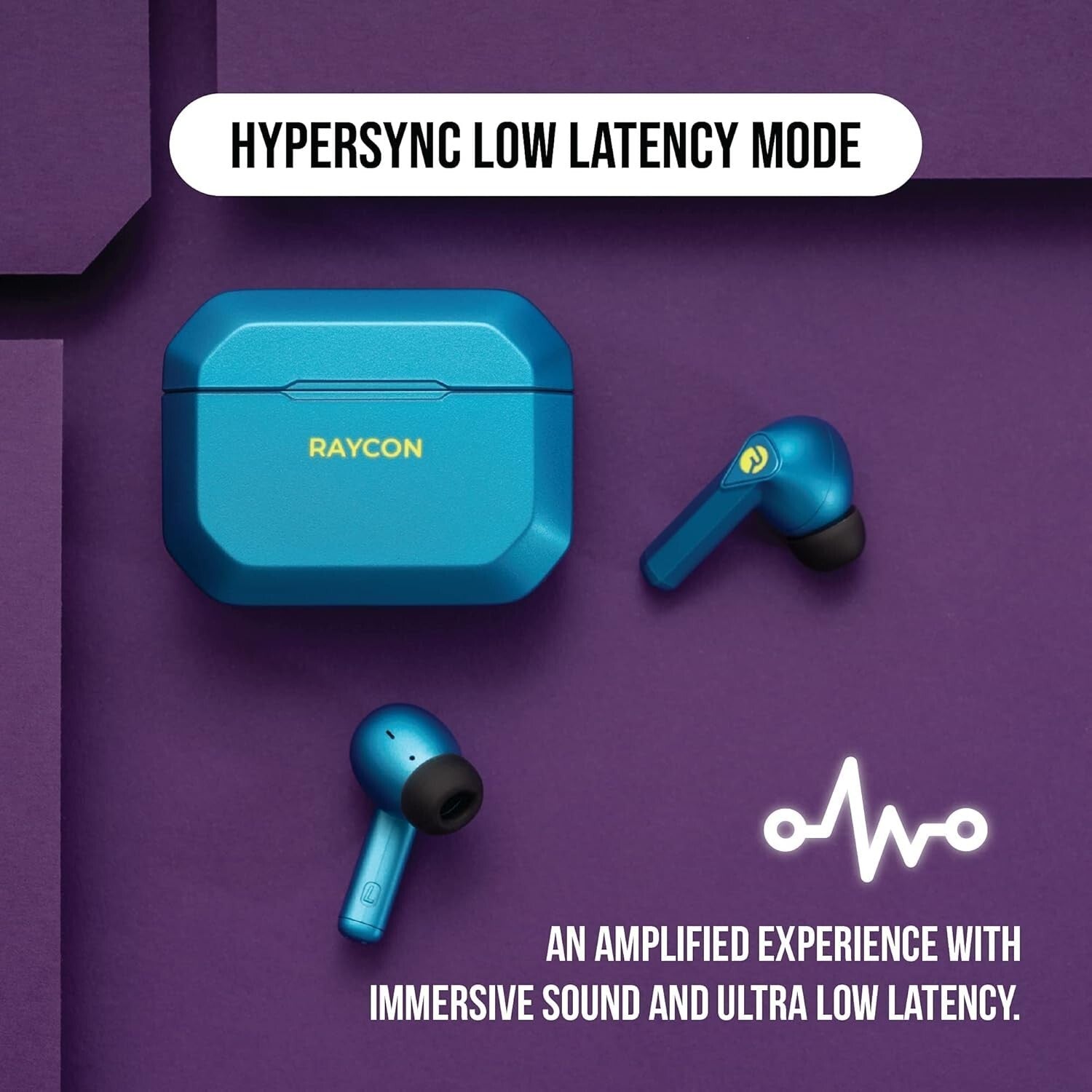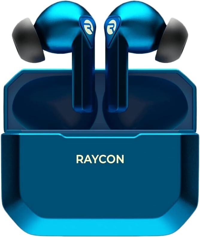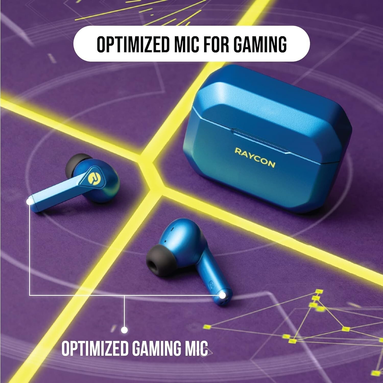 Raycon The Gaming Bluetooth True Wireless Earbuds con microfono integrato, bassa latenza, 31 ore di batteria, custodia di ricarica con conversazione, testo e riproduzione, Bluetooth 5.0 (Cyber Blue)