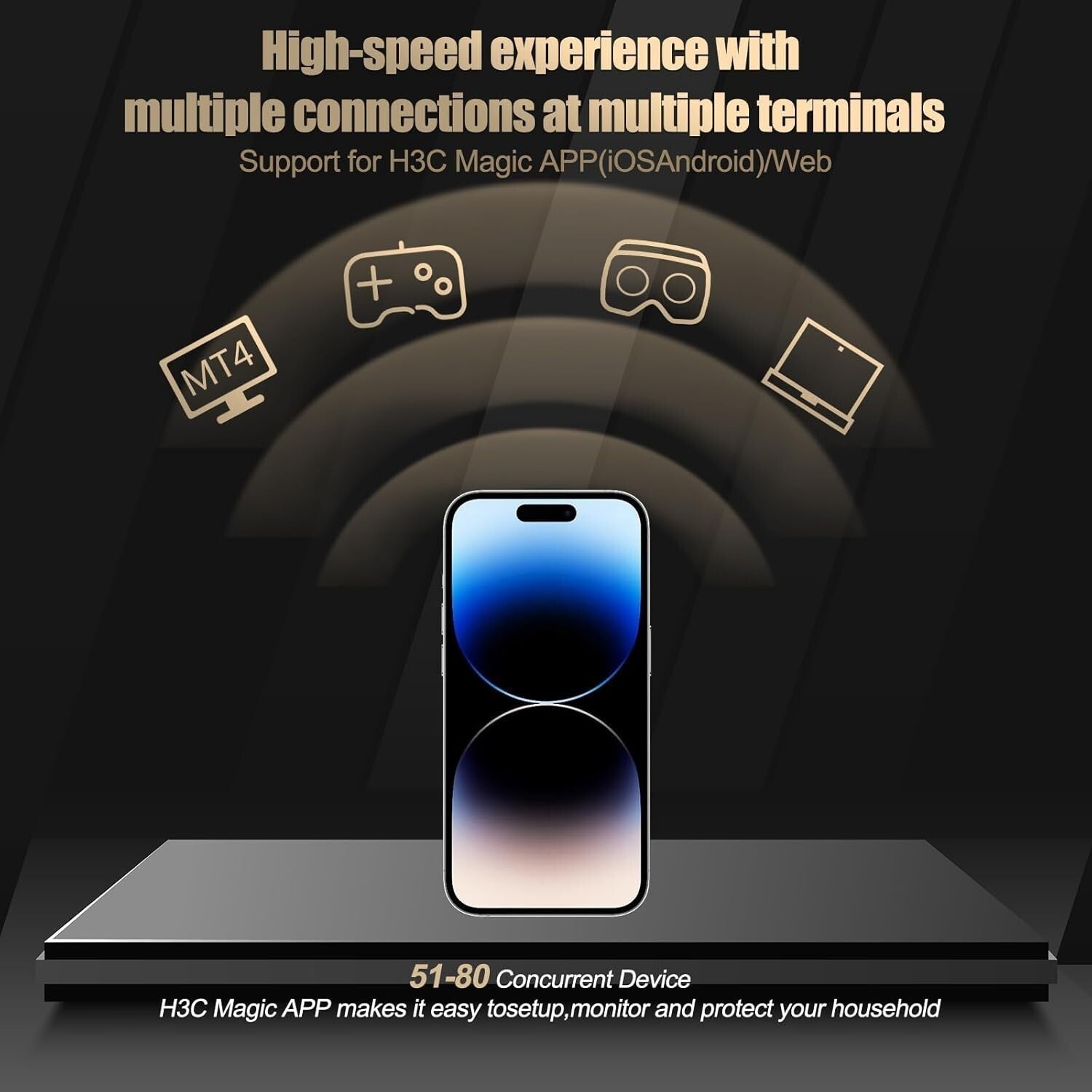 Connessione per dispositivi: utilizzando Wi-Fi 6 (802.11ax), questo router per internet wireless consente velocità più elevate e una maggiore capacità. Il router internet H3C offre un'esperienza online fluida ed efficiente, anche con più dispositivi connessi.