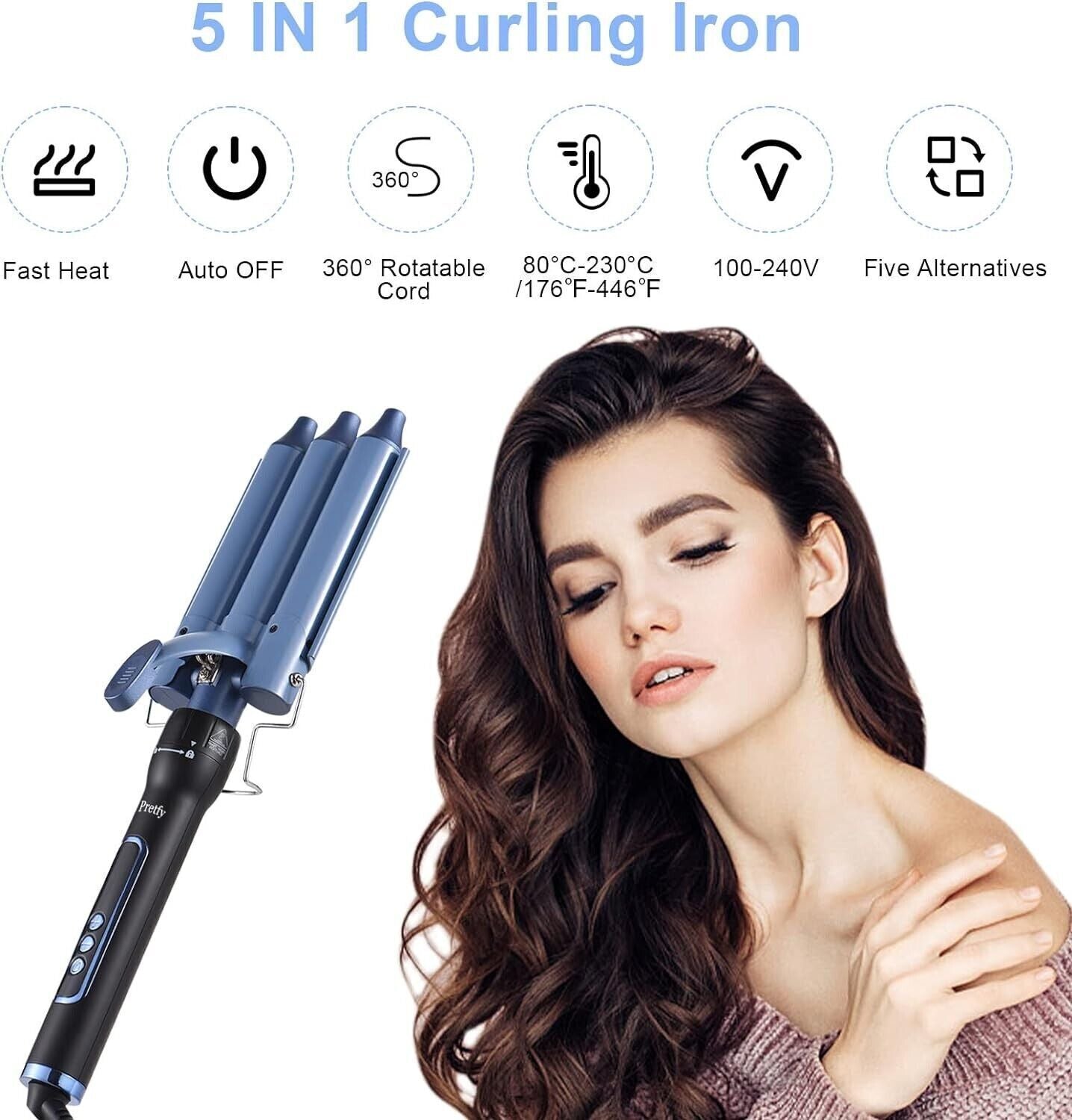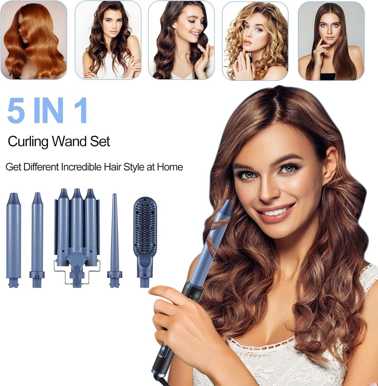 Più scelta per lo styling dei capelli: set di pinze per arricciare 5 in 1, ferri arricciacapelli di diverse dimensioni possono realizzare diverse acconciature, pinze per arricciare da 9-19 mm, 25 mm, 32 mm, pettine per capelli lisci, ondulatore per capelli a 3 cilindri da 25 mm. Set arricciacapelli e piastra 5 in 1: facile da lisciare o arricciare i capelli in modo efficace e sicuro a casa o in viaggio. puoi creare forme diverse, in modo da poter creare il tuo stile sempre e ovunque, ogni giorno.