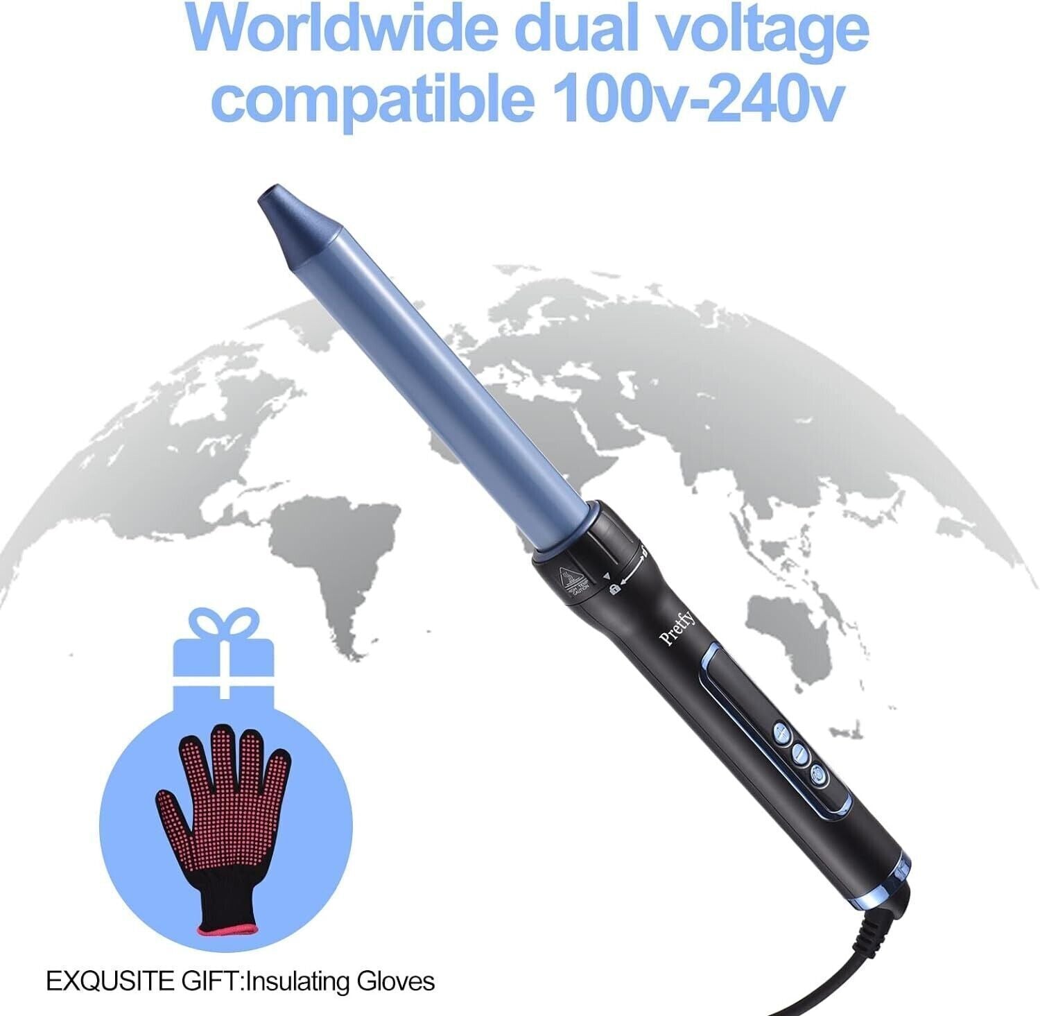 Funzionamento sicuro e styling facile: spegnimento automatico dopo 60 minuti, design ergonomico dell'impugnatura antiscivolo e cavo girevole a 360 gradi per uno styling facile. Adatto per capelli lunghi, sottili e spessi, ecc. Ferro arricciacapelli compatibile a doppia tensione (100-240 V CA ) ti garantiscono di utilizzarlo in tutto il mondo. Lunga durata, bassi tassi di guasto. Il cavo di alimentazione da 2 m fornisce una lunghezza sufficiente per asciugare i capelli.