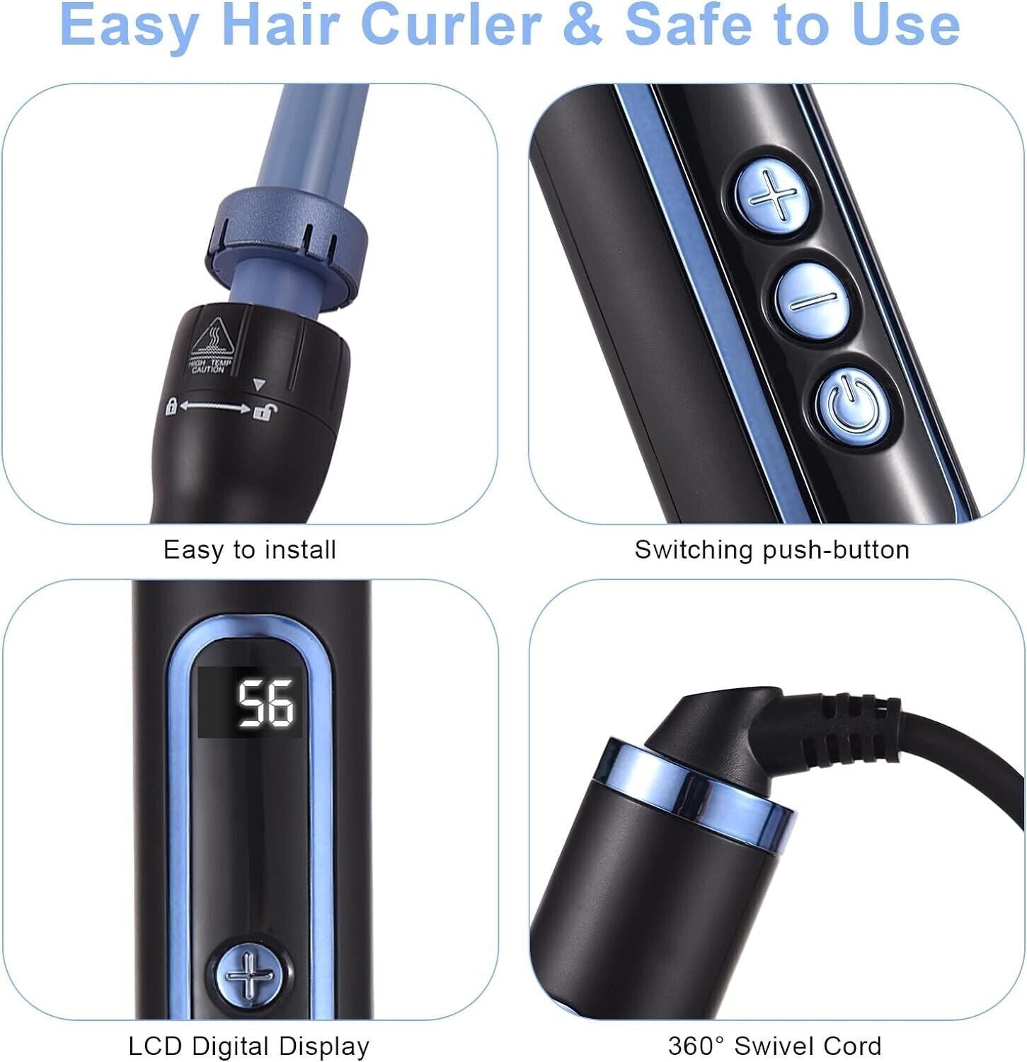 Si riscalda istantaneamente e si riscalda in 30 secondi: il set di bacchette arricciacapelli 5 in 1 realizzato con tecnologia PTC e ceramica di alta qualità che aiuta a rendere i capelli lisci e lucenti. Il bigodino con tecnologia di calore PTC, si riscalda istantaneamente in 30 secondi per trovare la giusta temperatura per modellare i tuoi capelli. Lo schermo LCD mostra la temperatura regolabile con un intervallo compreso tra 80°C e 230°C (176°F-446°F). La temperatura predefinita è 180°C.