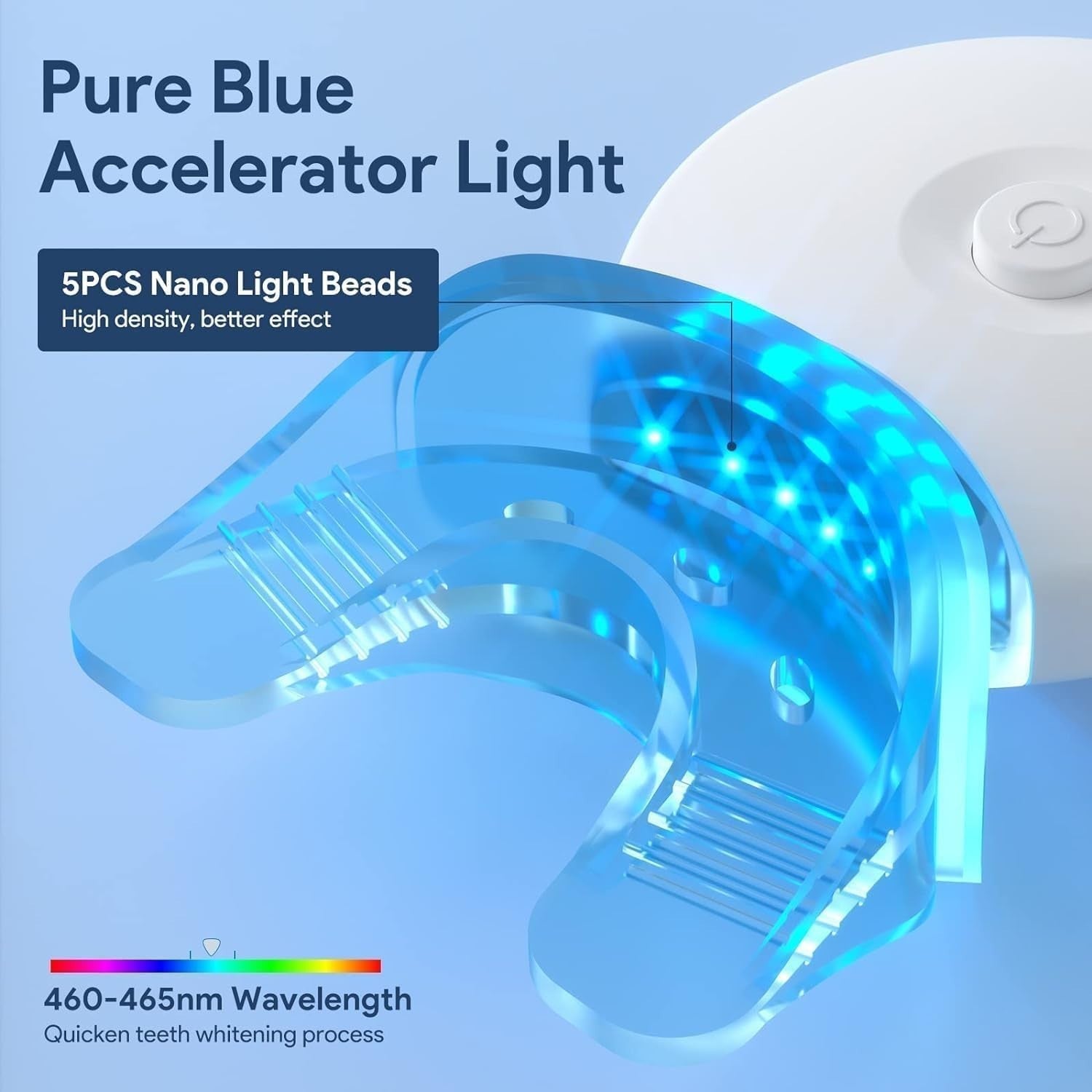 Set sbiancante completo per i denti: il nostro set di sbiancamento dei denti contiene tutto ciò di cui hai bisogno per un'esperienza completa di sbiancamento. Contiene 1 luce sbiancante dei denti, 6 siringhe con gel sbiancante per denti, 2 gel desensibilizzanti, 1 stecca per la bocca, 1 chiave di colore e 1 pratico manuale di istruzioni (lingua italiana non garantita). La tecnologia di sbiancamento dei denti con luce attiva accelera il processo di sbiancamento dei denti. Il design compatto consente l'uso in viaggio e lo rende un prodotto di bellezza indispensabile per la casa, l'ufficio e in viaggio.