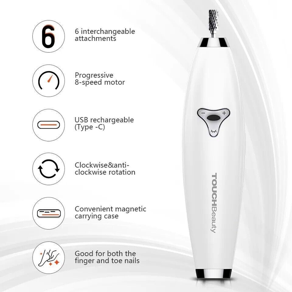 Set Manicure e Pedicure Elettrico, TOUCHBeauty Trapano per Unghie Elettrico, Potente Fresa per Unghie con 6 Accessori, Lima Elettrica per Unghie di Lucidatura per Unghie di Piedi e Mani