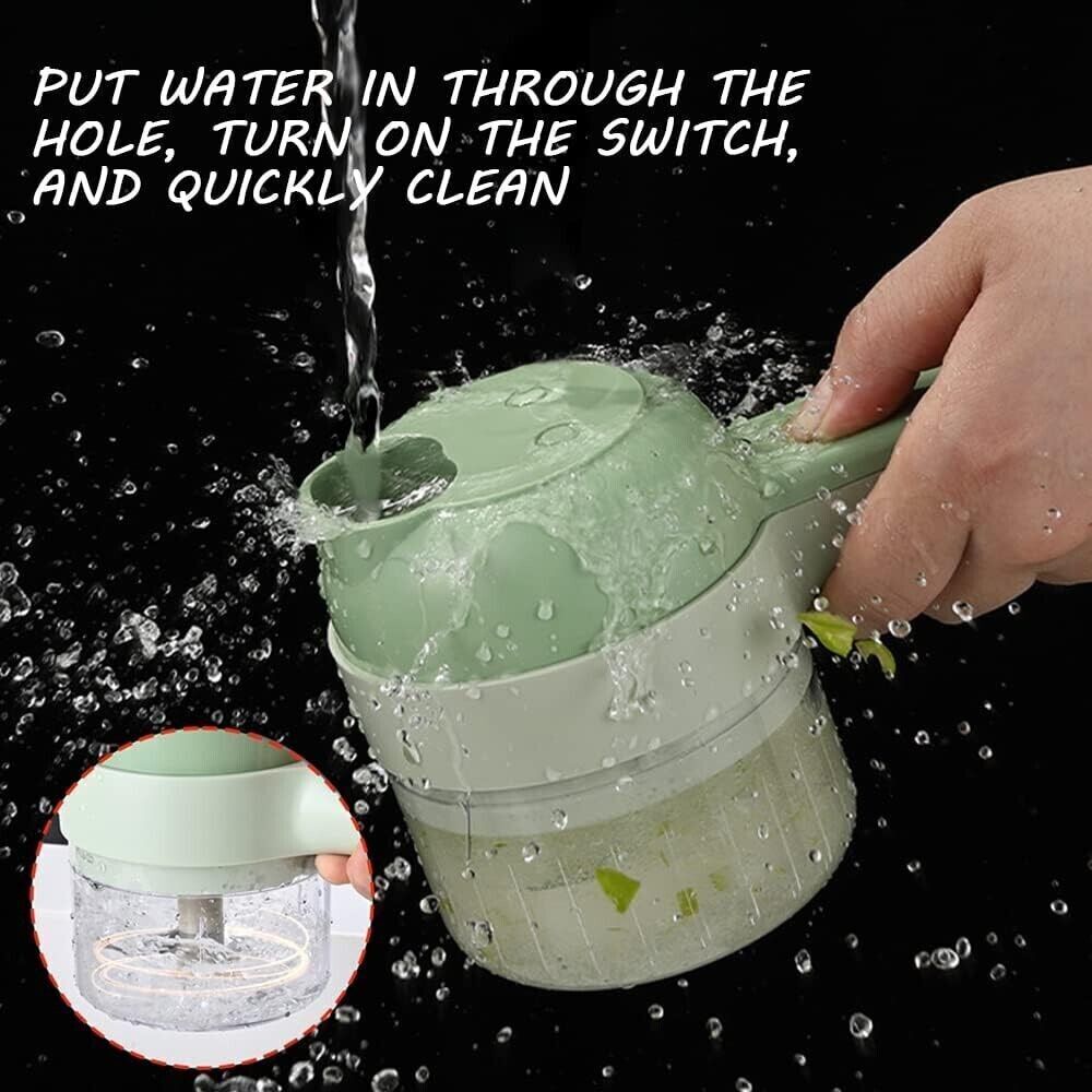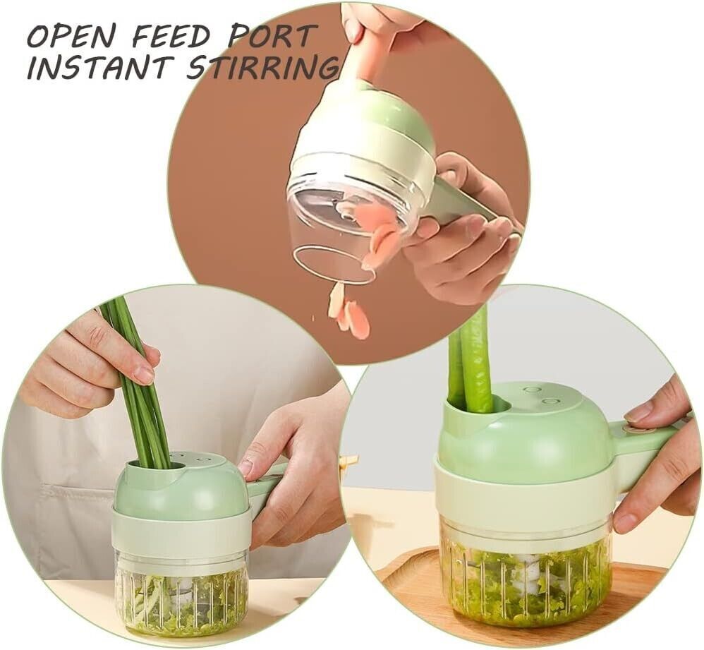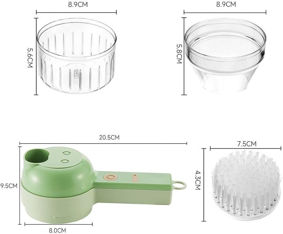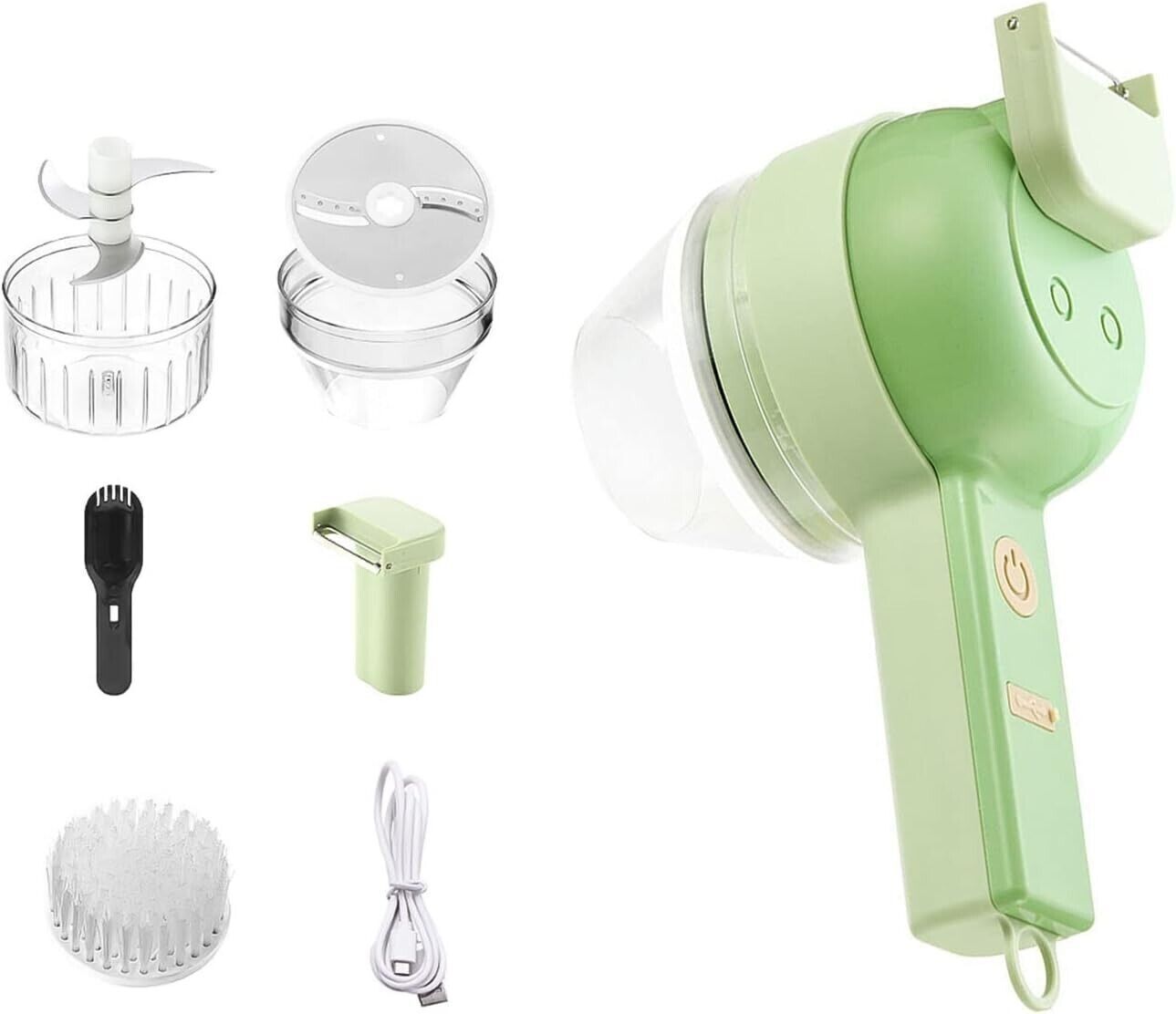 Set Tagliaverdure Elettrico Portatile 4 in 1 Trita verdure Spazzola Pulizia