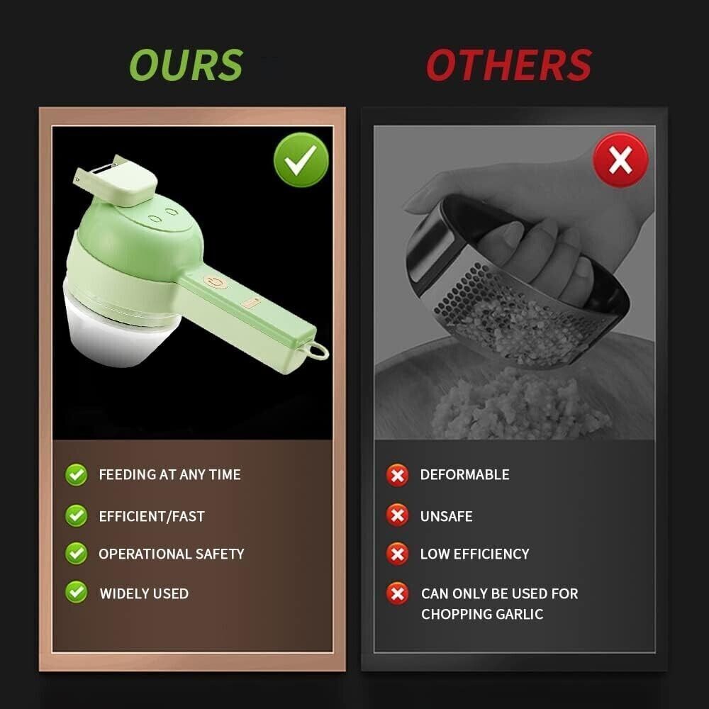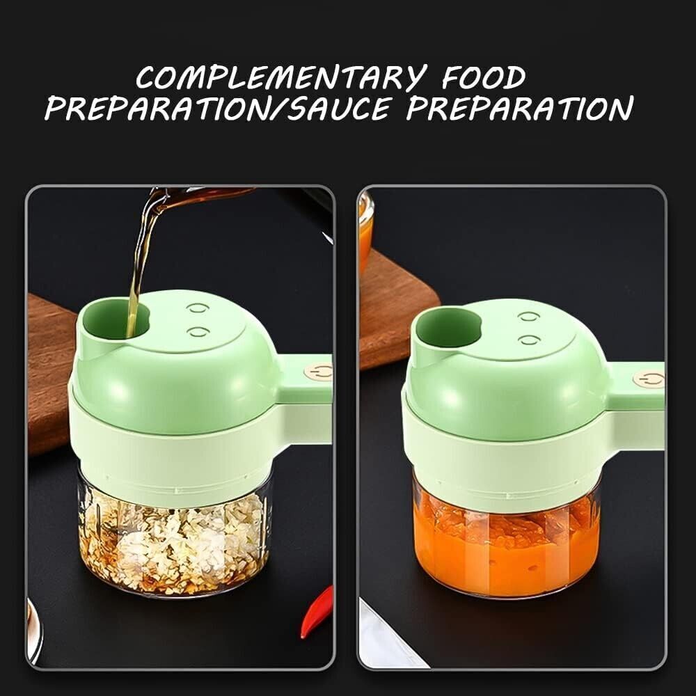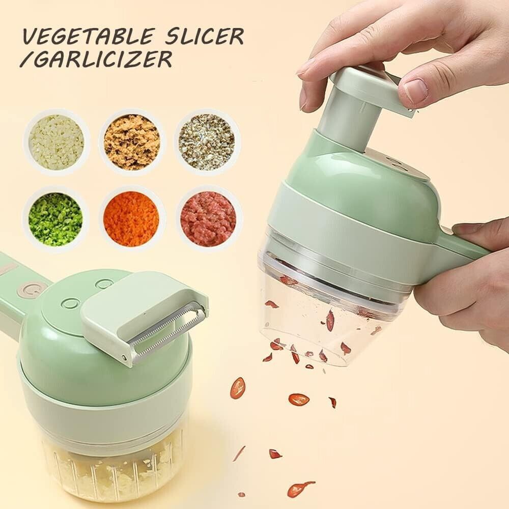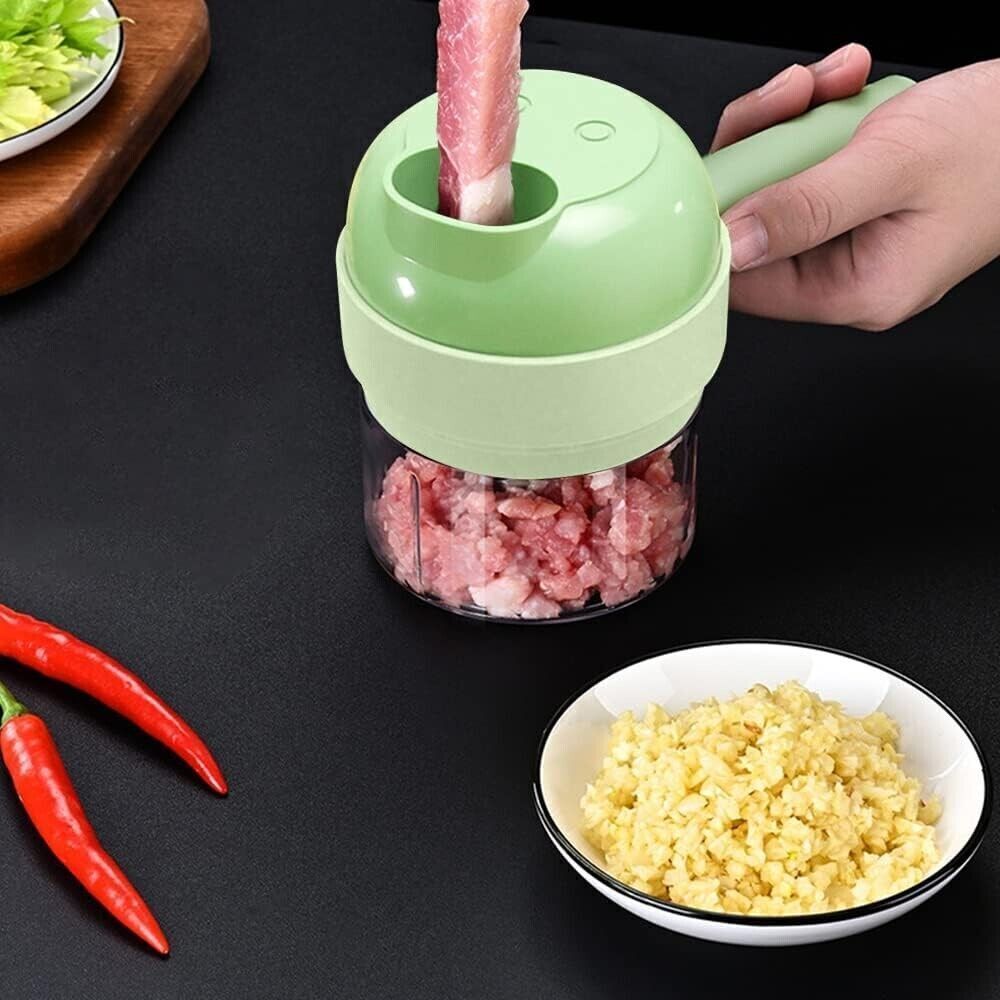 Set Tagliaverdure Elettrico Portatile 4 in 1 Trita verdure Spazzola Pulizia