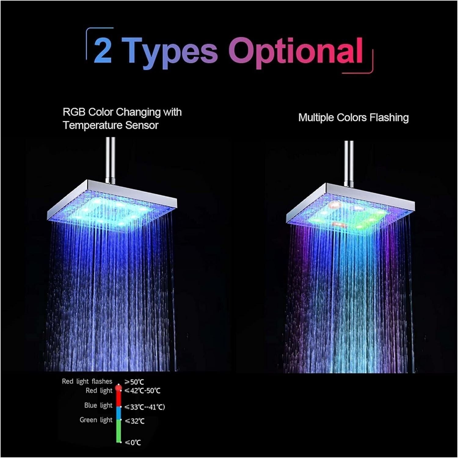 Soffione doccia, Soffione doccia Precipitazioni soffione quadrato della testa di acquazzone automaticamente cambia colore sensore di temperatura della doccia per il bagno