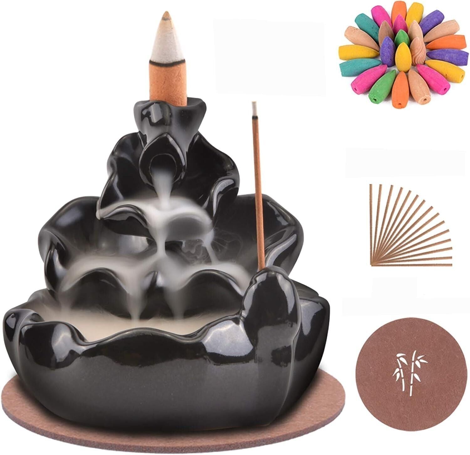 SOLEJAZZ Bruciatore di incenso a riflusso Porta incenso a cascata per decorazioni per la casa Ornamento per aromaterapia con 120 coni di incenso e 30 bastoncini di incenso