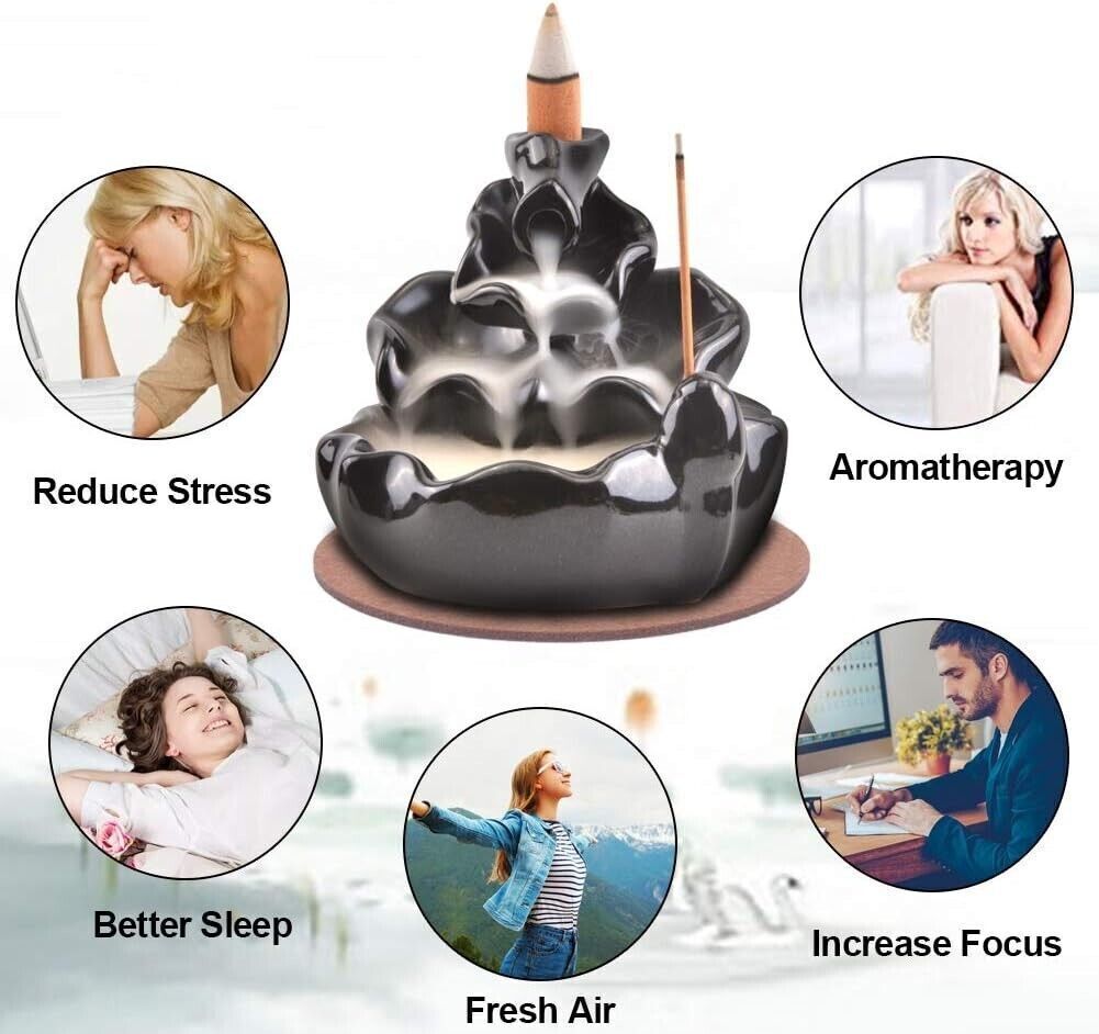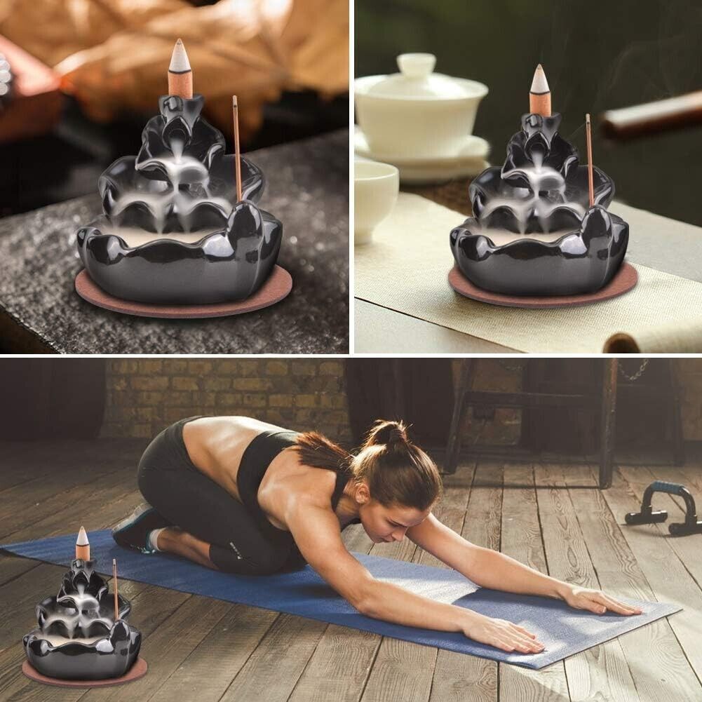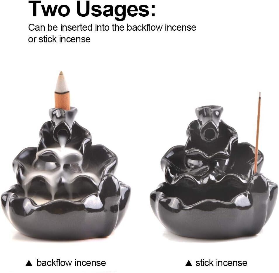 Due usi: il bruciatore di incenso a riflusso può essere utilizzato sia con coni di incenso che con bastoncini di incenso.