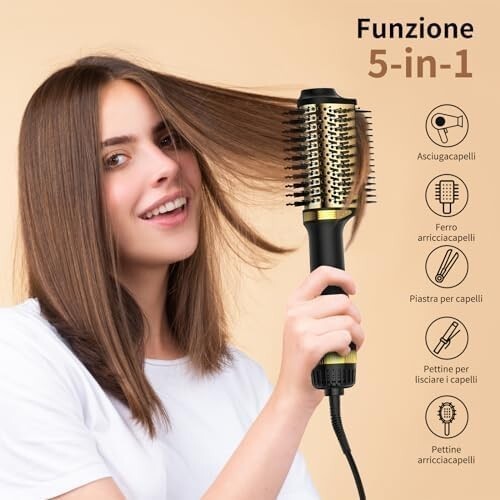 Spazzola asciugacapelli ARAS 5 in 1, 1000 W , con pettine lisciante laterale